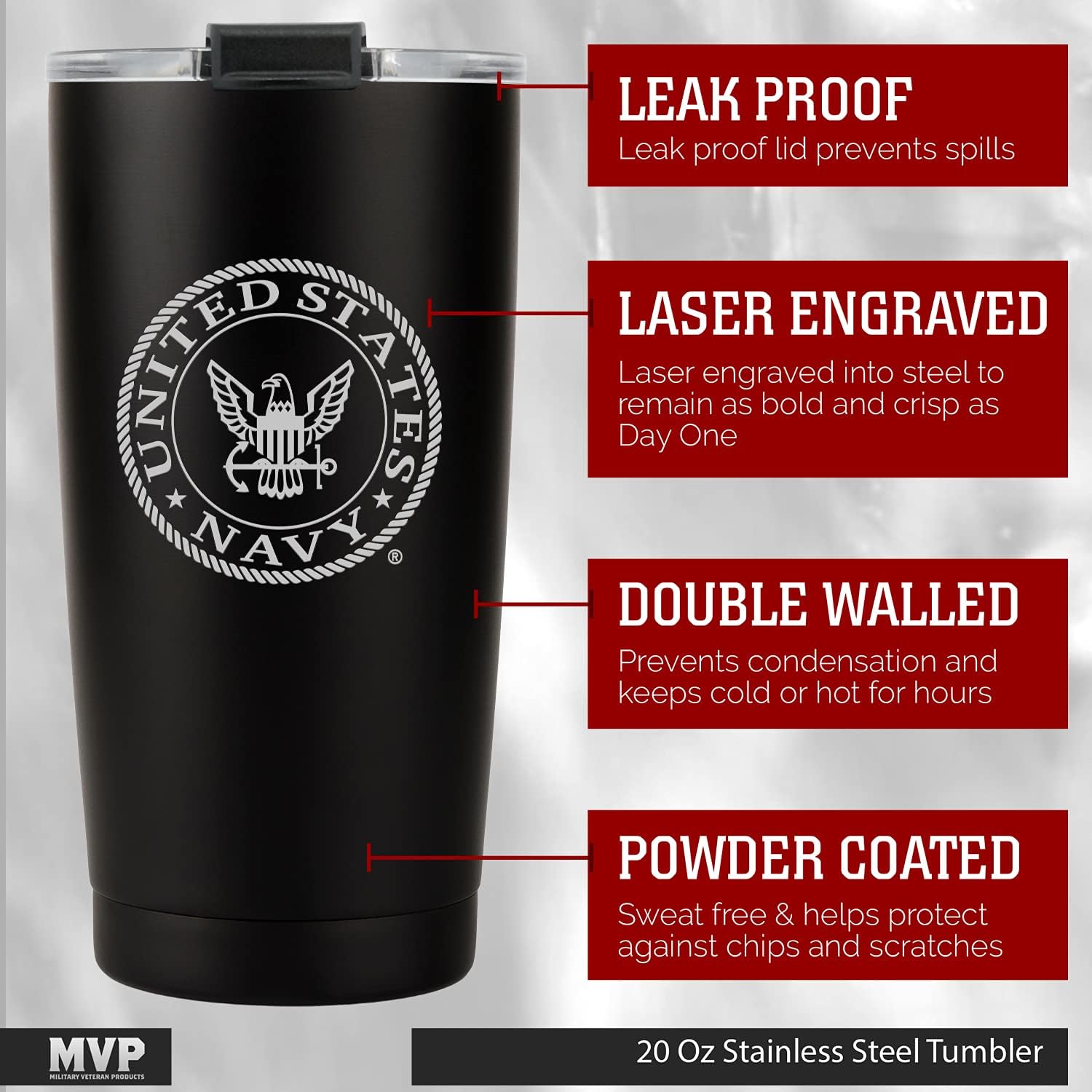 - LASER ENGRAVED NAVY LOGO: Proudly showcases a precise laser engraved US Navy logo, reflecting the honor and valor of our Navy servicemen and women.