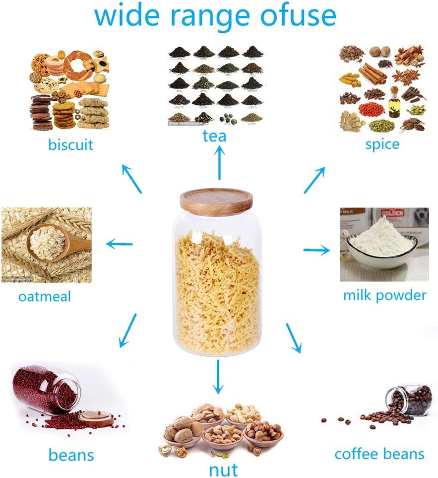 SAIOOL Modern Design Transparent Glass Food Storage jars, Food storage containers glass,100FL OZ(3000ml) Enlarged Thickened with Sealed Wooden Lid to Store Food, herbs, Tea, Easy to Use and Clean