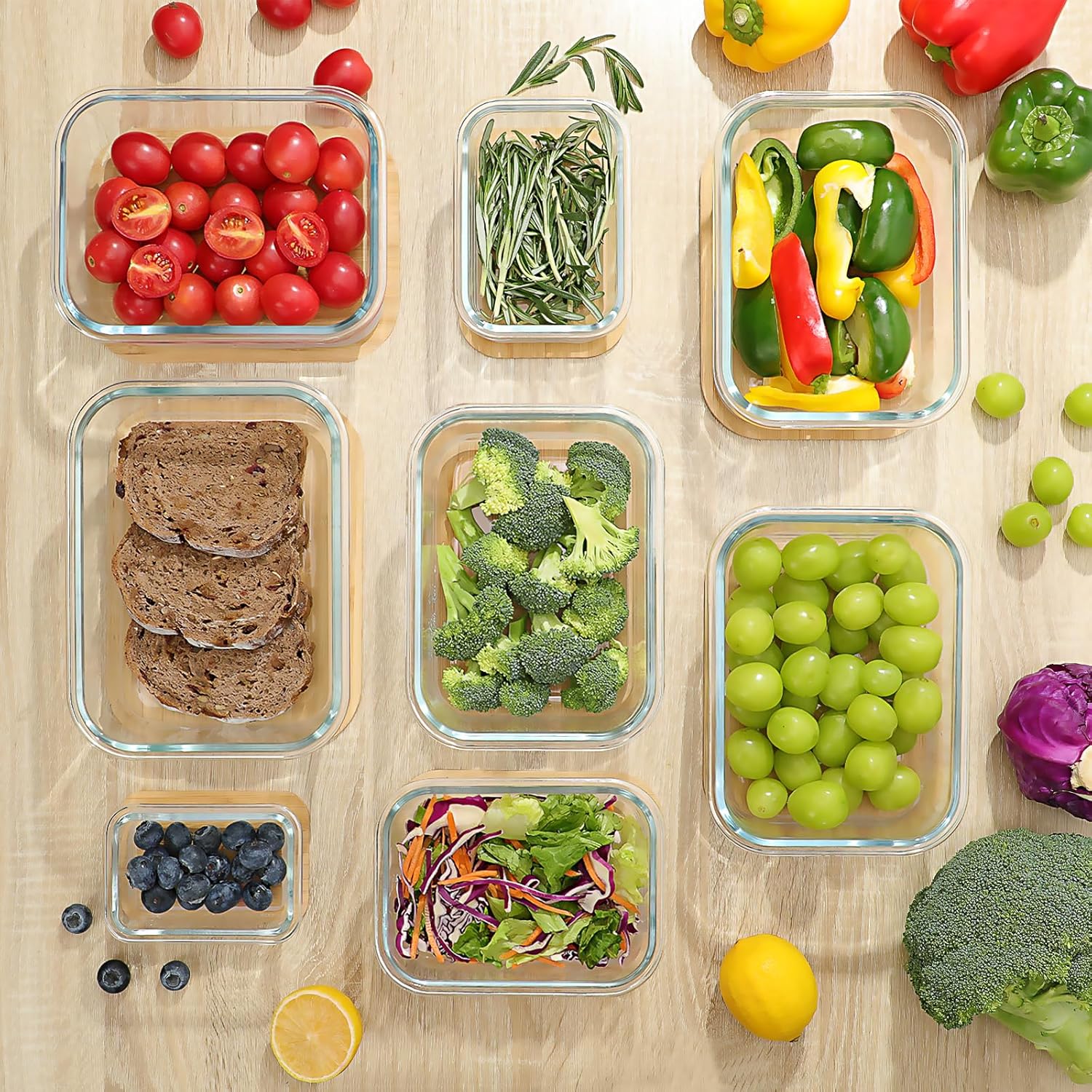 - ✅ ALL-IN-ONE USE: Simply use our glass container for meal prep, our 5 different sizes give you generous for storage space for all needs, straight from the food prep to the oven cook. Our borosilicate glass is oven safe up to extremely high temperature 600F degree, server the delicious meal for lunch or dinner after cooking then storage the leftover in the container with airtight bamboo lids in the fridge. You can also use as a lunch box and to warm in microwave or oven for the next day.