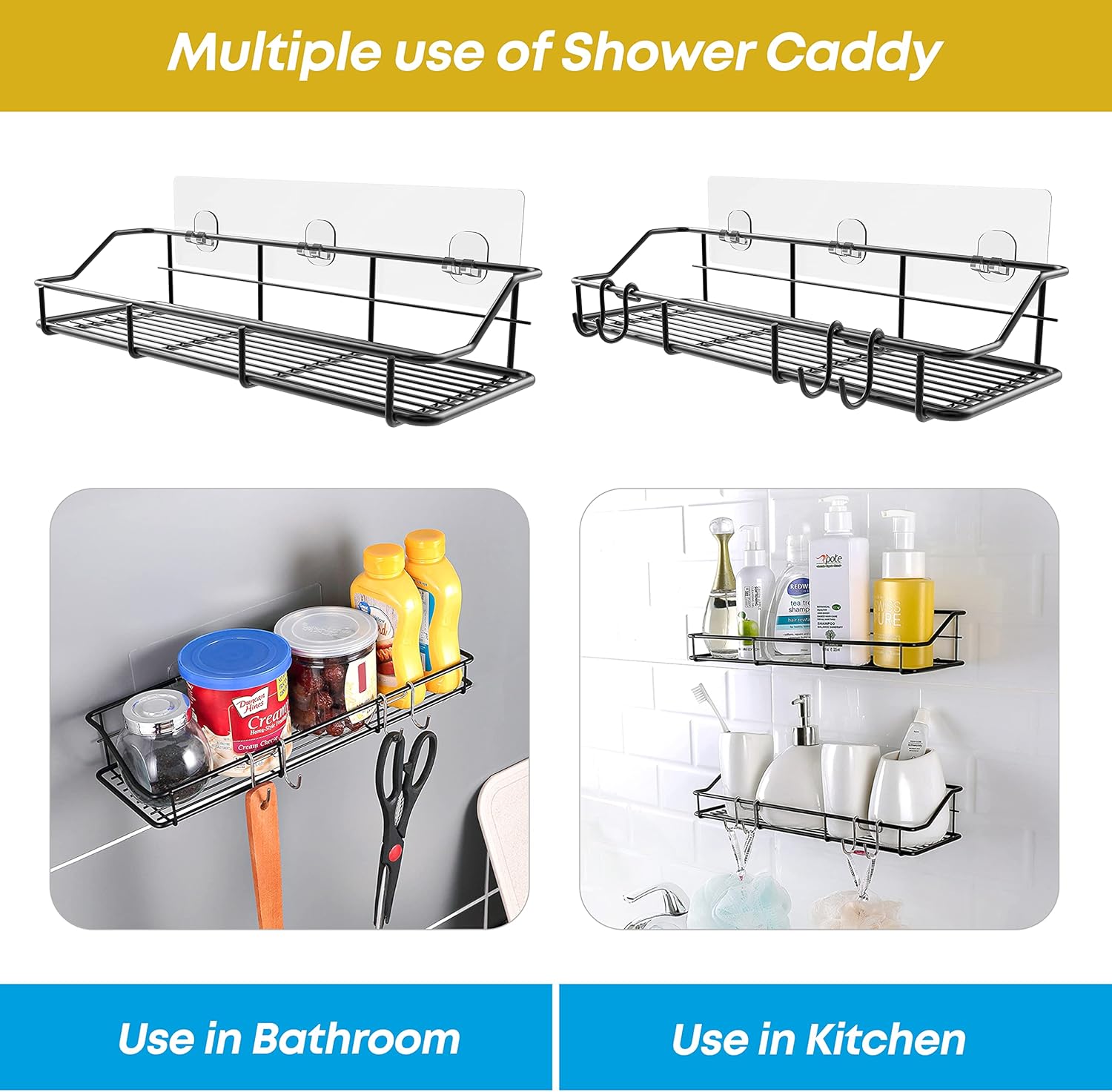 KESOL Adhesive Shower Caddy Shower Shelf Organizer with Hooks, SUS304 Stainless Steel, 2 Pack (Black)
