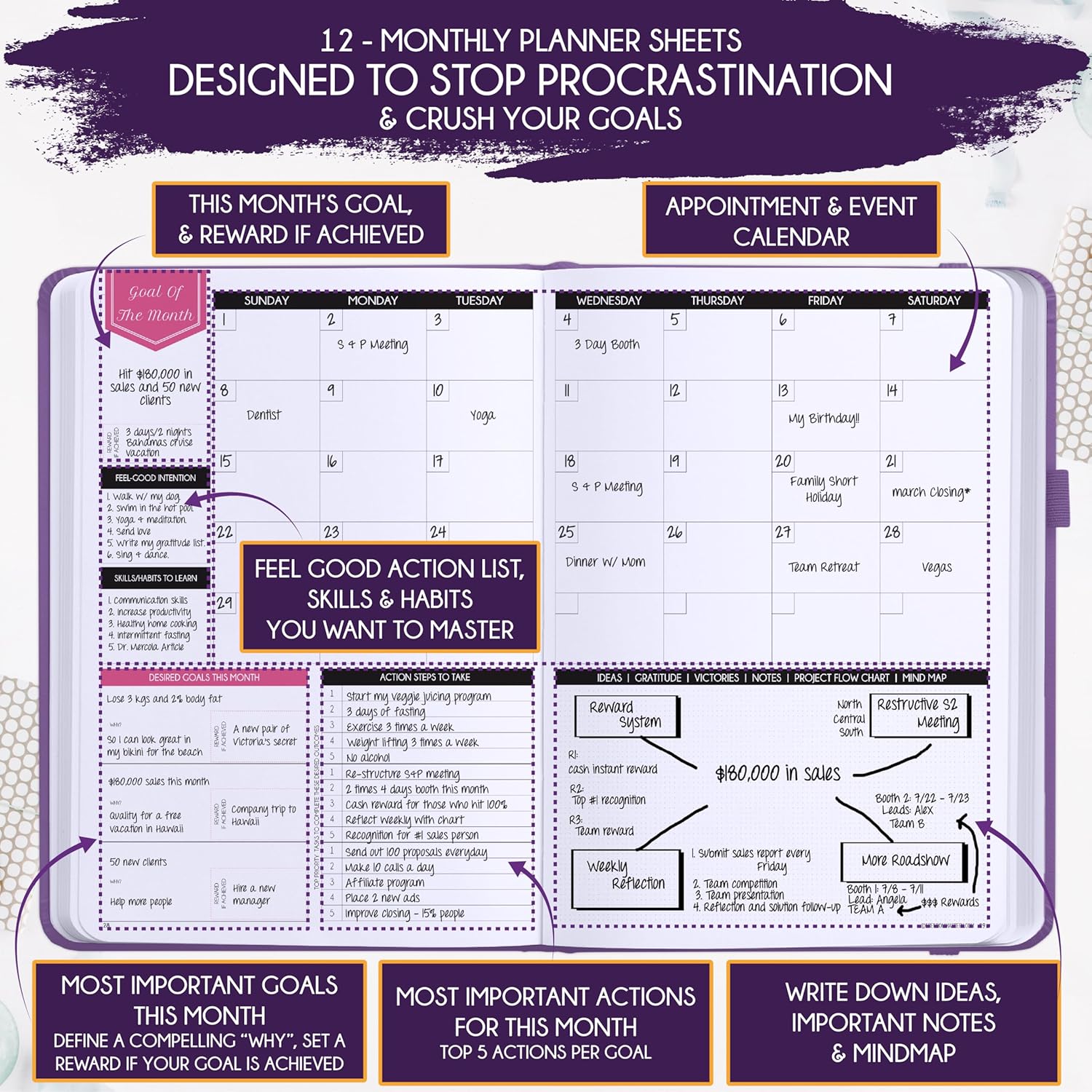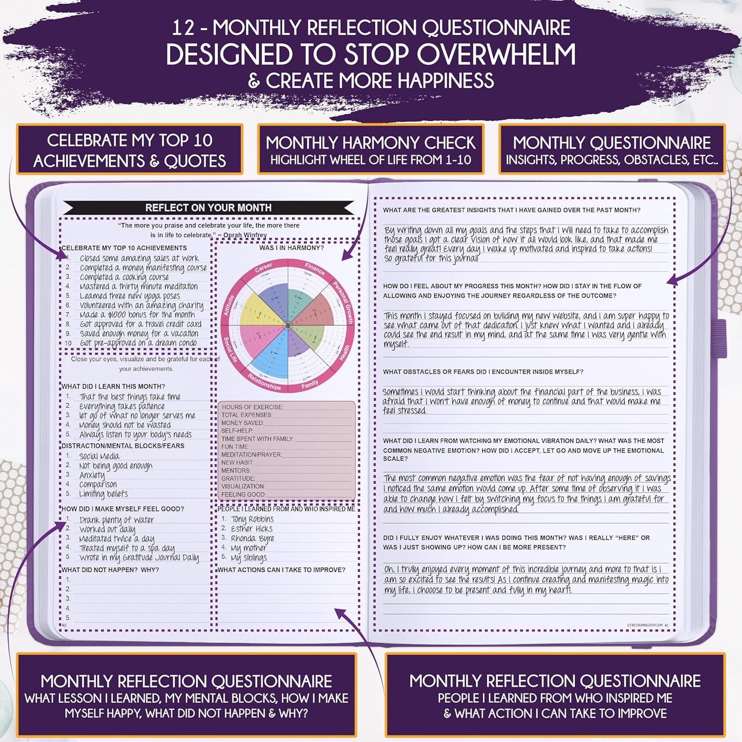 - INCREASE PRODUCTIVITY AND HAPPINESS - This is a deluxe life goal planner showing you how to become the best possible version of yourself on a mental, physical & interpersonal level using the law of attraction vibration guide. This planner is a daily planner, monthly planner, weekly planner, productivity planner, goal planner, business planner, to do list planner, planner notebook & gratitude journal all-in-one.