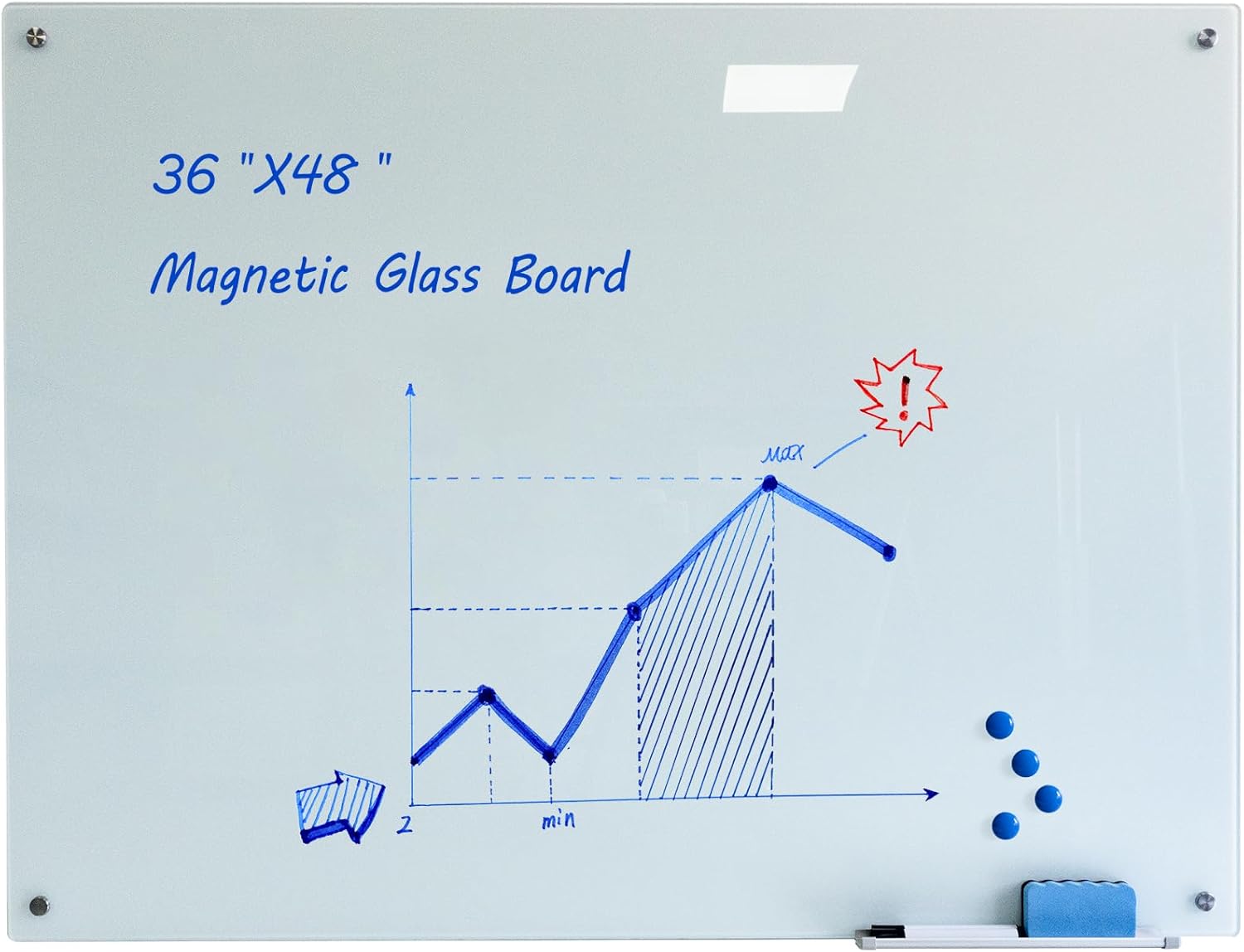 - Sleek Frameless Design 36''x48'' (90x120cm) big writing area for brainstorming and notes. Frameless design and look fits office, home, classroom.