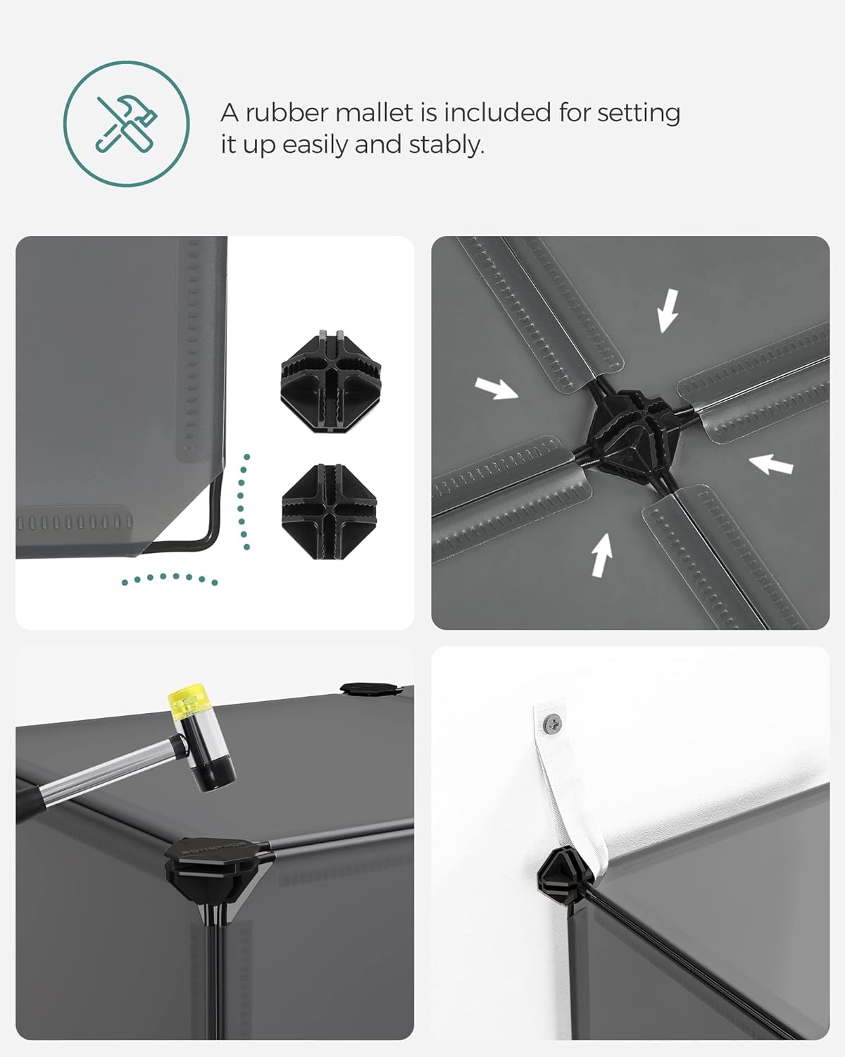 - [Use Many Ways] Store clothing, shoes, or bags in these storage cubes in your living room, entryway, bedroom, or office. Use it as a room divider, make a DIY playpen for your pet, or assemble it into different forms within the limit of the included parts