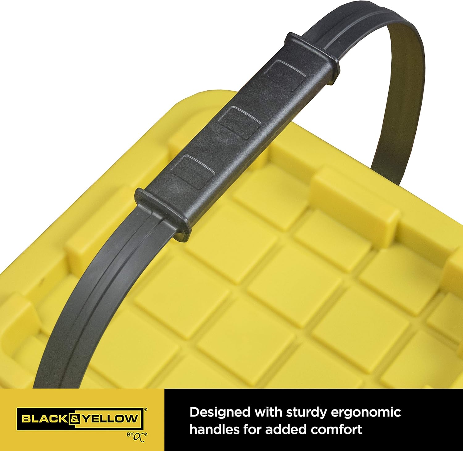 - ORGANIZATION: Save room and maximize space with the BLACK & YELLOW 5-Gallon Bucket Storage Container. Its the perfect way to organize any room and manage any clutter. Clean up any space whether its in a bedroom, closet, under the bed, garage, basement, laundry room, attic, workshop, shed, or anywhere else. The innovative lid is recessed, making it easy to stack multiple containers on top, and nesting them together.