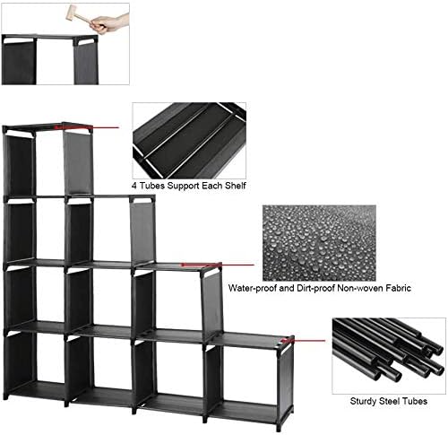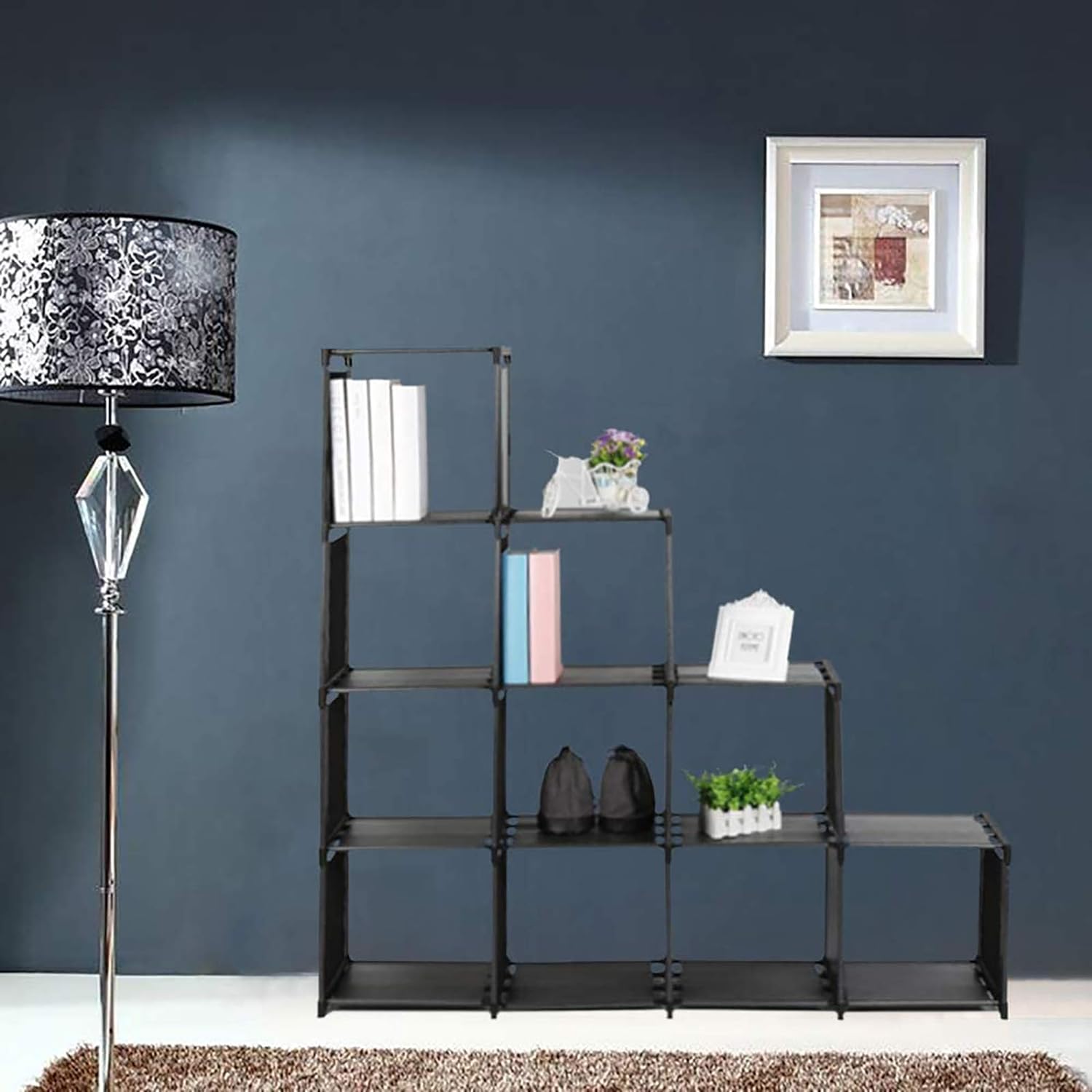 10-Cube Storage Organizer Rack, Staircase Organizer Modular Bookcase, DIY Storage Organizer Closet Shelf, Bookcase in Living Room, Bedroom for Toys and Daily Necessities, Black