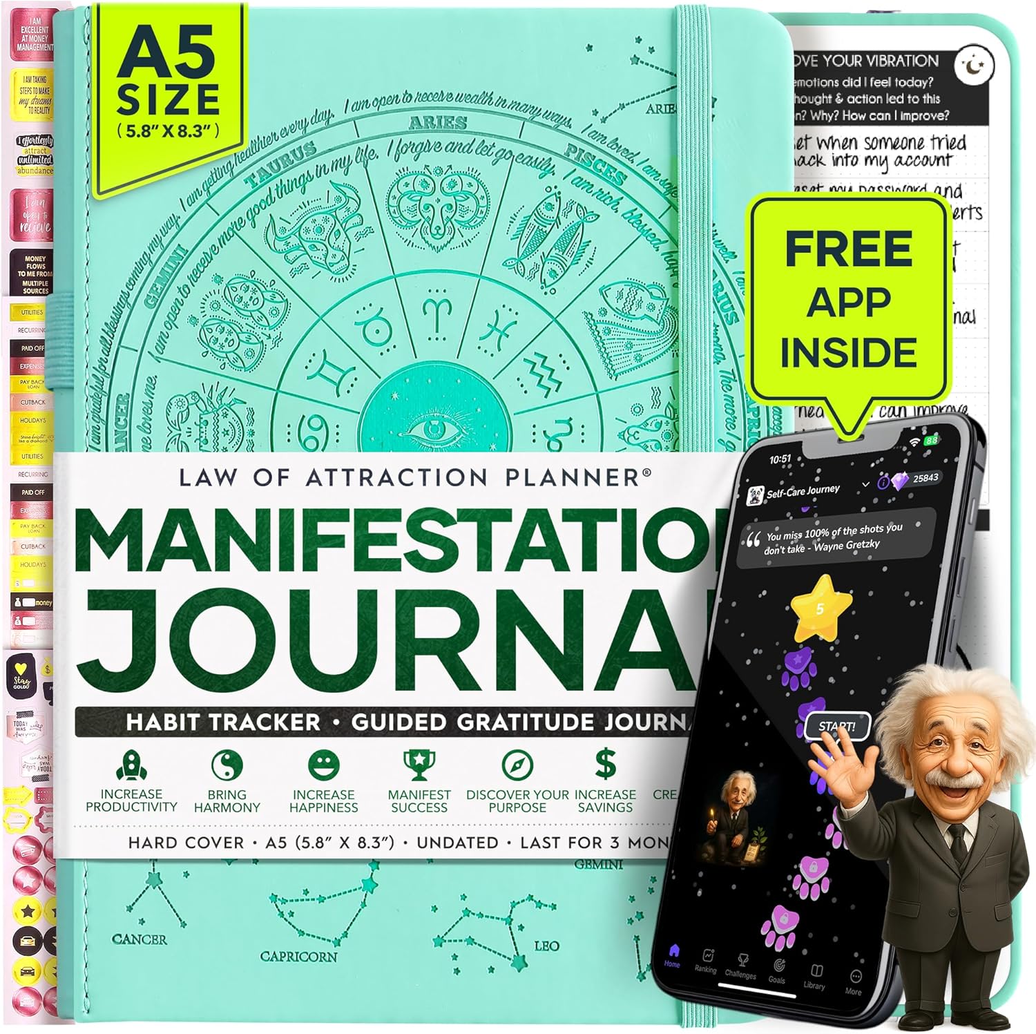 - MANIFESTATION JOURNAL - This deluxe daily planner and gratitude journal for women comes in A5 size (5.8 x 8.3 inches). The life planner comprises 264 pages of thick 100 gsm paper, including 90 daily planning sheets, guiding you on how to become the best possible version of yourself on a mental, physical, and interpersonal level. It's a unique diary based on leading scientific studies proven to increase productivity and happiness. The journal features an out-foldable vision board to help you stay focused, morning and evening power questions, mind maps, reflection pages, habit trackers, a back pocket, and much more than any other planner on the market!