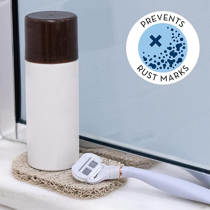 - Place at the sink or in the bath or shower for a secure hold on shelves; try using under personal care products like shampoo, conditioner, and shaving cream bottles to keep shelves cleaner