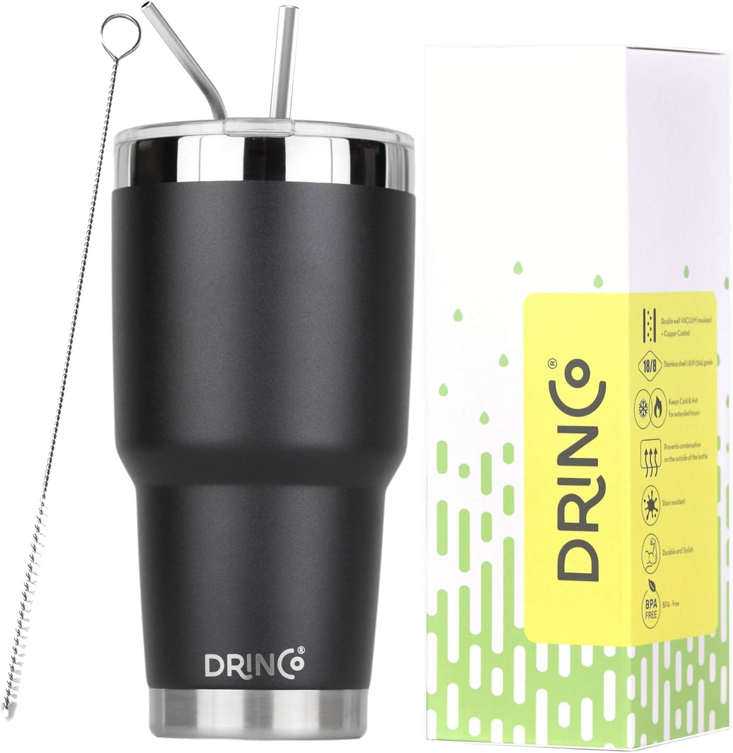 - ✅ PREMIUM QUALITY STAINLESS STEEL: The Drinco travel tumbler with straw has been constructed with a sturdy stainless steel body a material lauded for its durability. Effective insulation with a see-through removable cap to keep your drinks hot and cold.