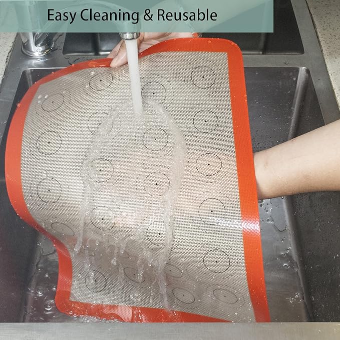 - đăEASY CLEAN-UPă The smooth surface of half sheet silicone baking mats make it so easy to sperate your baking food from the mat and pan. Enjoy a truly non-stick surface that makes cleaning effortless. Even burnt sugar and fat easily rinse off with warm soapy water or can be placed in the dishwasher.