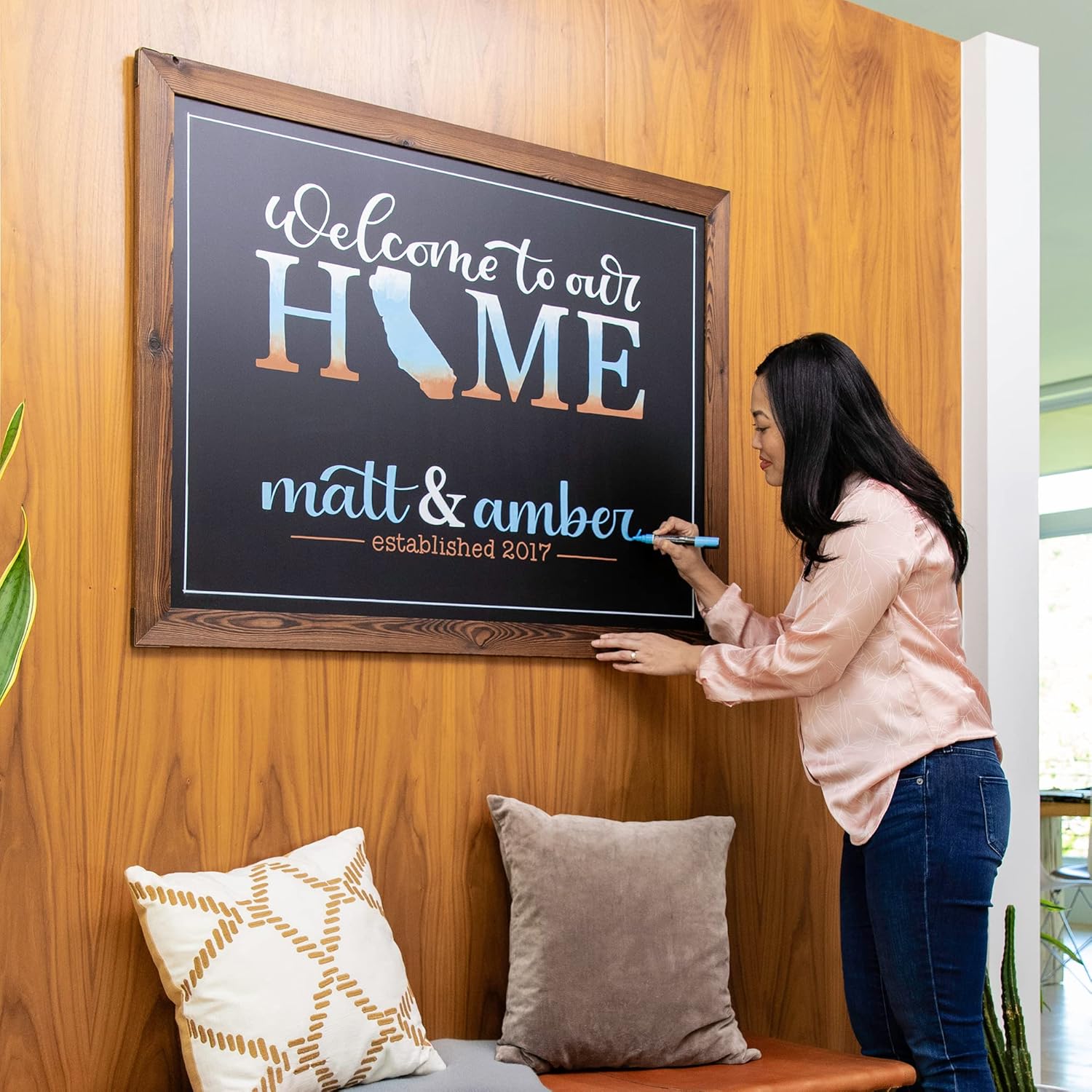 - Chic Decor Upgrade: Transform any room with this framed chalkboard for wall use. Its smooth black surface and rustic frame blend with any style, adding a cozy vibe to your living room or kitchen. Great for jotting notes or showing off photos