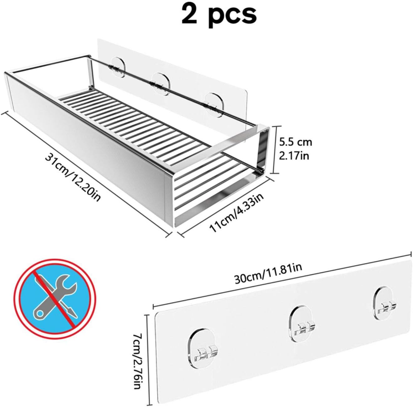 - 【Stainless Steel & Strong Load Bearing】The multi-functional bathroom shower caddy / kitchen spice rack is made by premium-grade SUS 304, waterproof and rustproof. Stand the test of time with strong load capacity of 15 LBs each. Even though you tear off the adhesive, the shower caddy can be recycled and reused