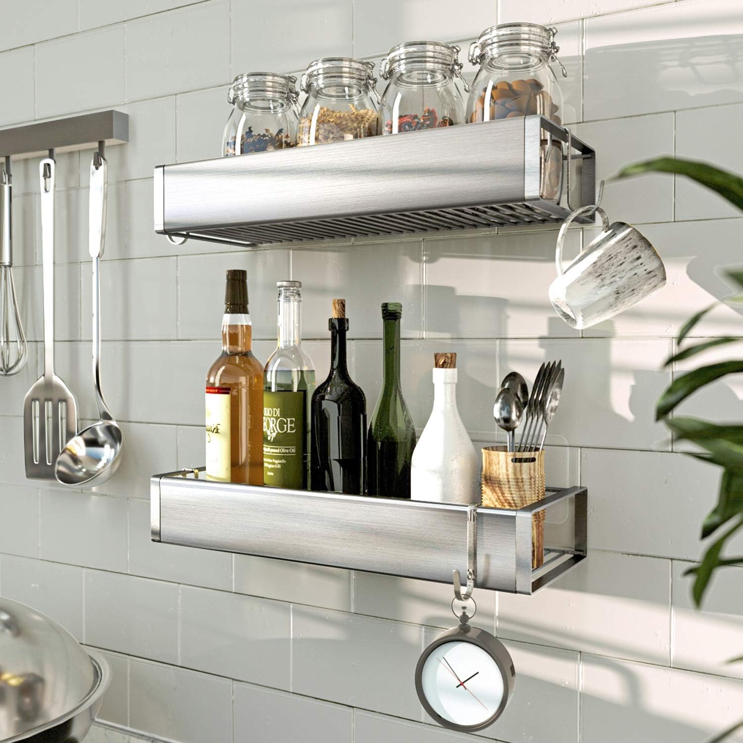 - 【Wide-range Application】 The adhesive shelves suitable for any smooth wall surface like tiles, refrigerators, glass, or doors. Perfect for storing home items, lotions, make-up, face towels, cleansers, soaps, shampoo, or kitchen items such as sauce spices, cooking oils, condiments, grains, canned goods, salt & pepper grinders, coffee bags and much more as spice rack