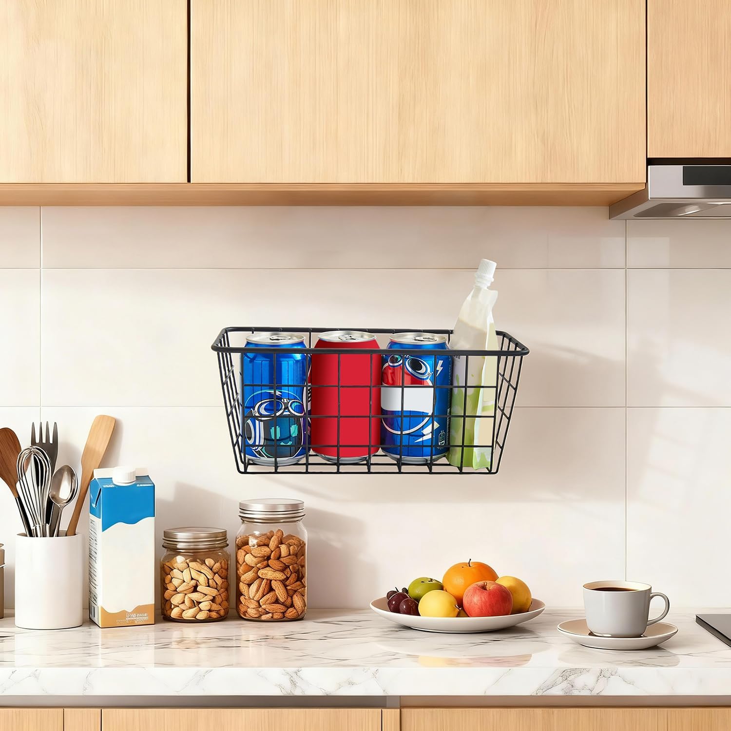 2 Set Adhesive Hanging Wall Basket Inside Cabinet Door Organizer,Wall StorageBasket-No Drilling Adhesive wall Basket for Cupboard Door, Space-Saving Small Hanging Baskets for Wall Mount Storage,Black
