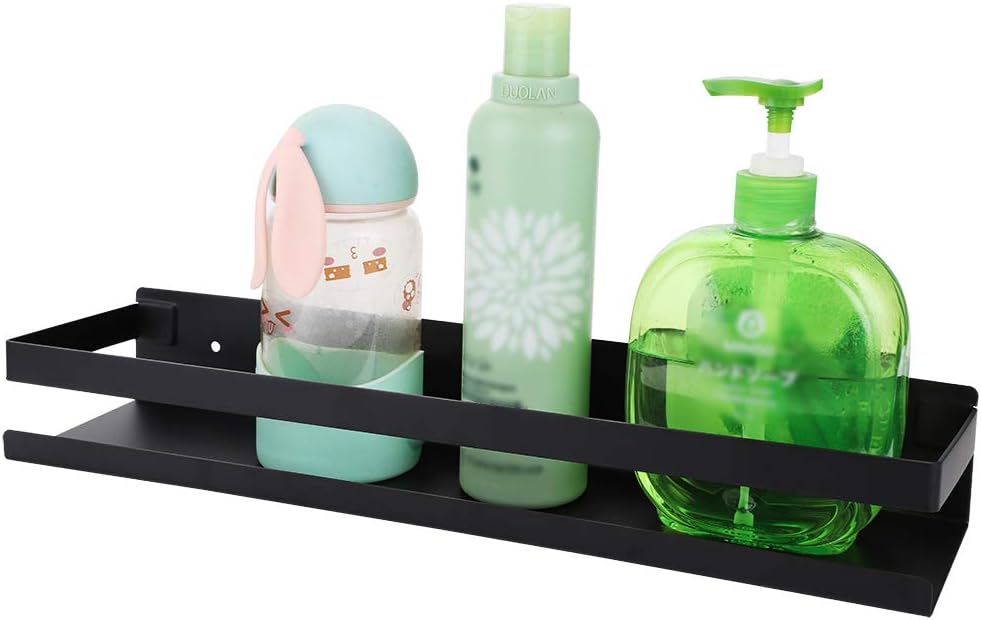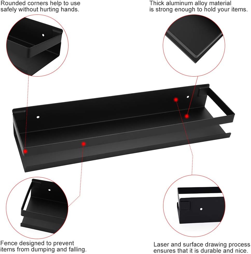 OwnMy Bathroom Shower Shelf Stainless Steel Bath Kitchen Basket Shower Caddy Rack, Rustproof Metal Bathroom Storage Floating Shelves Wall Mounted Shower Corner Rectangular Shelf - 16 Inch Black