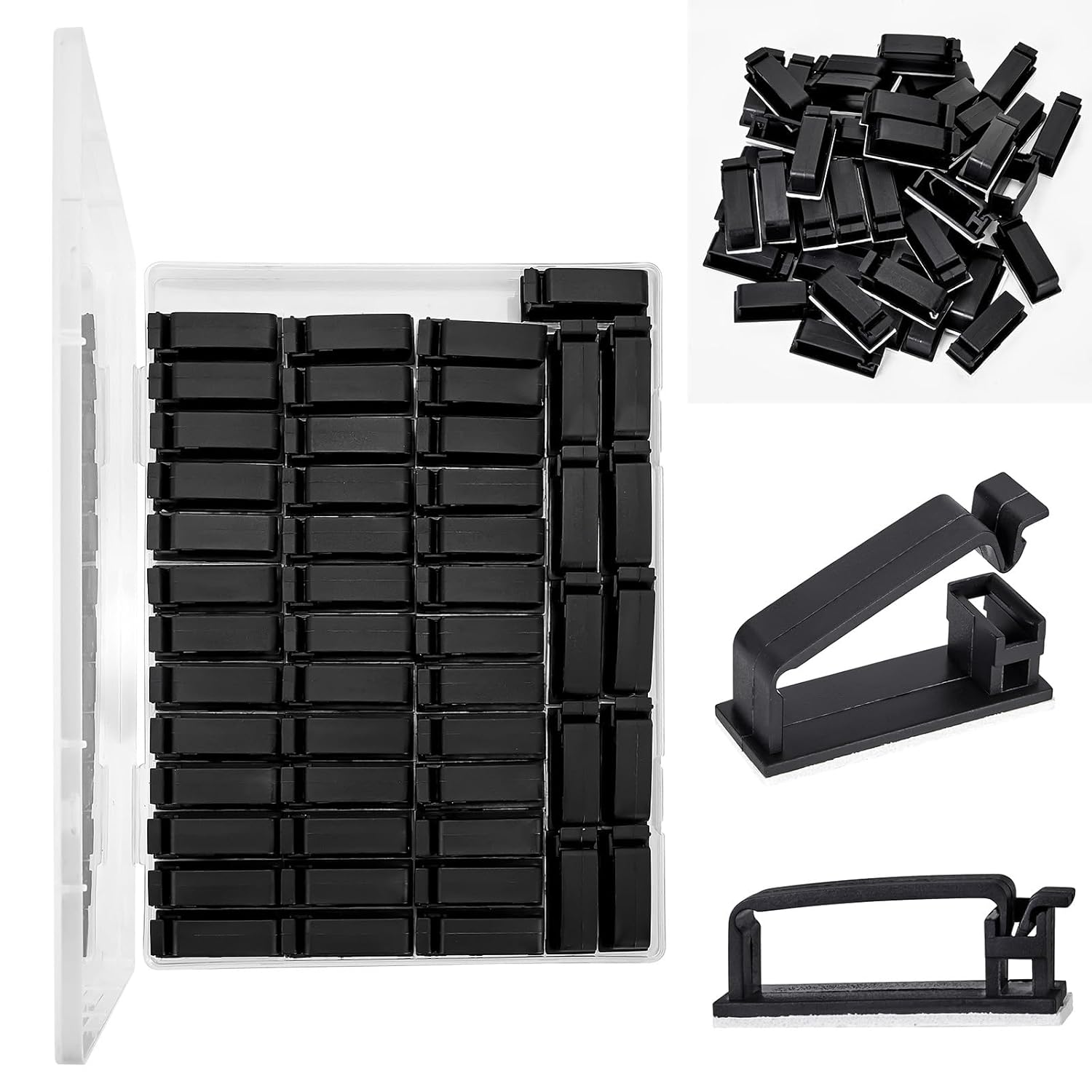 50Pcs Self Adhesive Cable Management Clips,Cable Organizers Wire Clips Cord Holder for PC Laptop Ethernet Cable Desktop Home Office(1.52’’ x 0.59’’ x 0.57’’, Black)