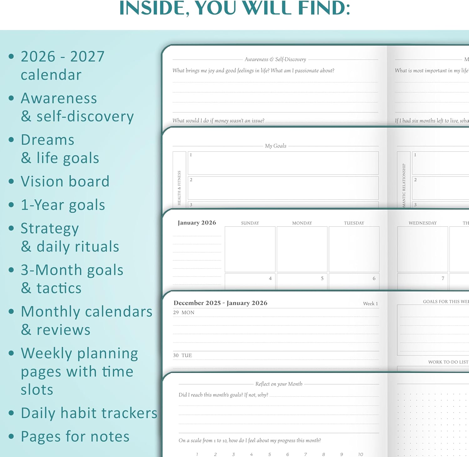- DATED GOAL PLANNER FOR 2026 – This large-format 2026 dated planner combines effective planning tools and goal-setting frameworks to help you stay focused and productive throughout the year.