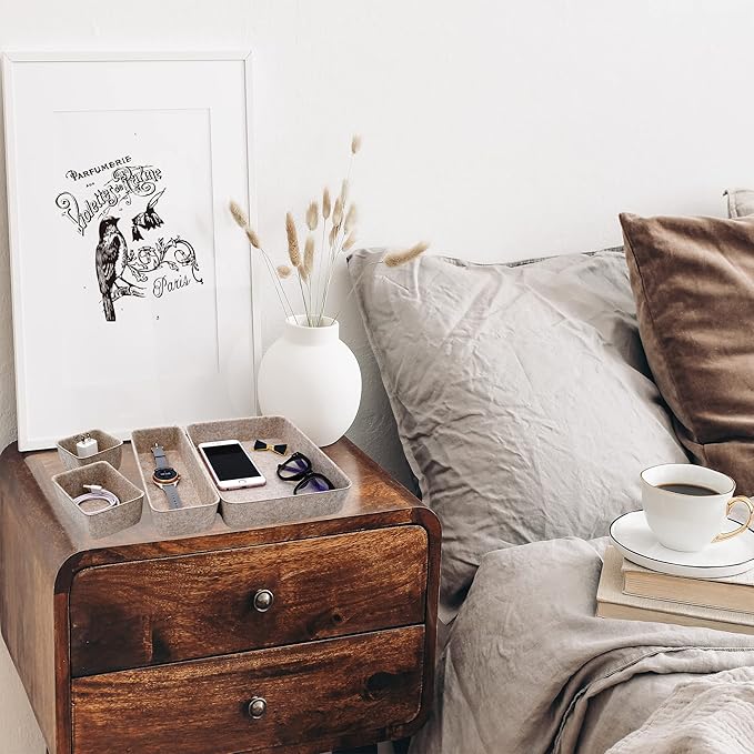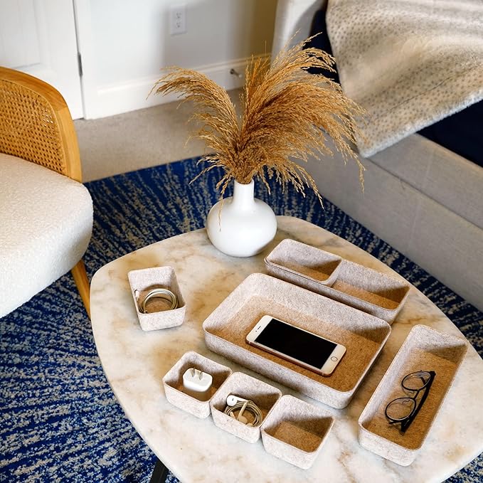 - 【Sustainable material】 recycled felt with comfortable touch feeling. no noise like plastic keeps stuff from flying around in the drawer. The soft felt material protects your valuables from scratches while adding a touch of sophistication to any space.