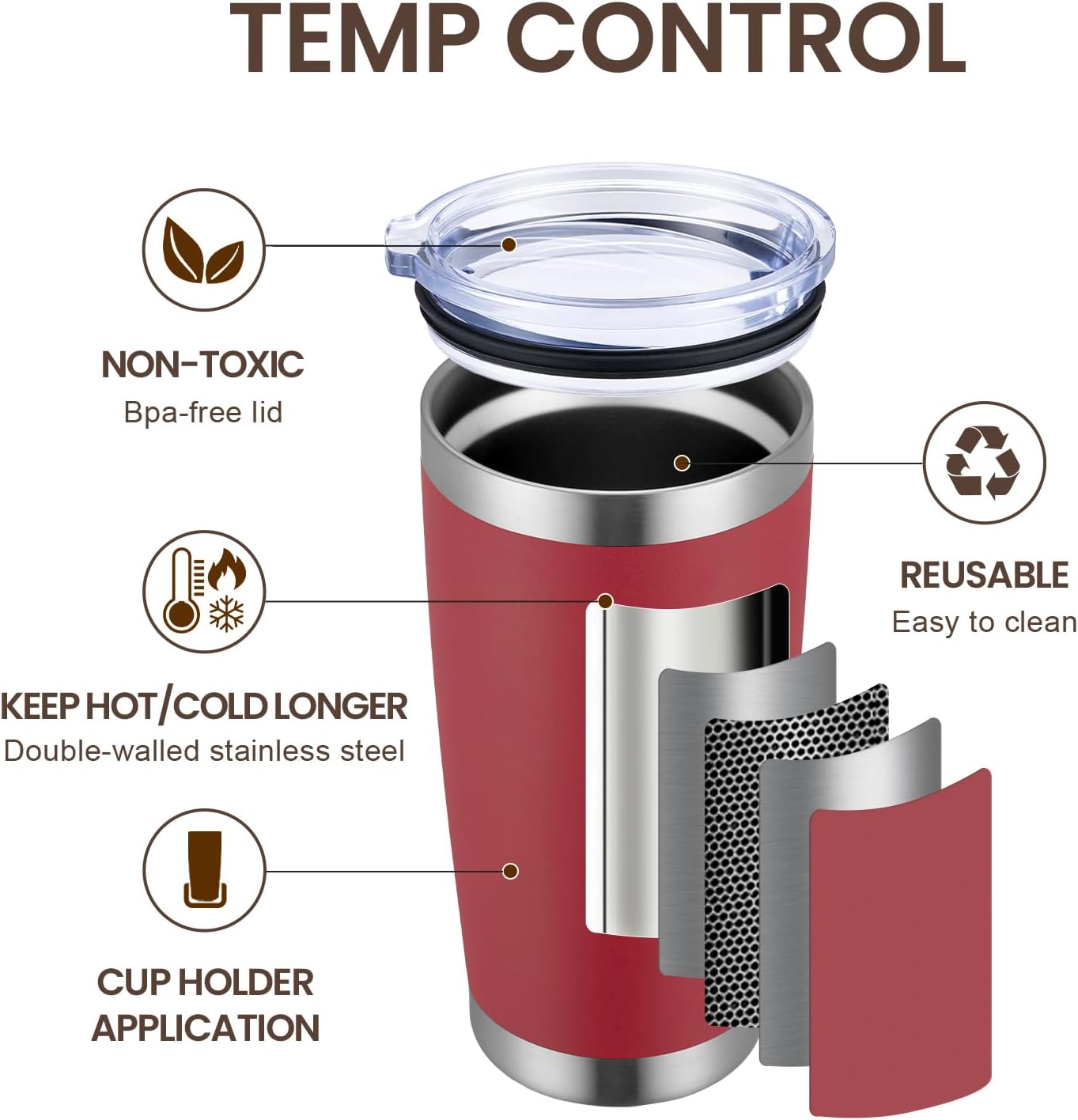 MEWAY 20oz Tumbler 4 Pack Double Wall Vacuum Insulated Travel Mug Bulk, Stainless Steel Tumblers with Lid and Straw, Powder Coated Coffee Cups for Cold & Hot Drinks (Red, Set of 4)
