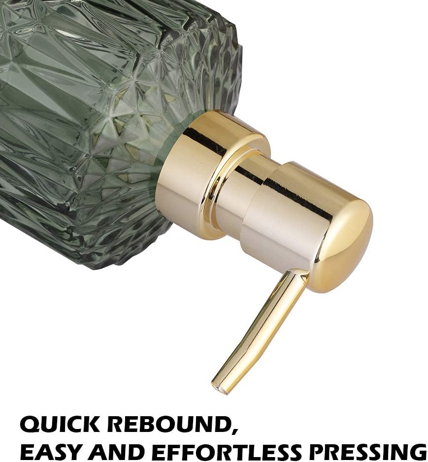 - Cut-Glass Dispenser: Stylish glass soap dispenser with pattern, perfect for soap, lotion, hand soap, dish soap, etc.