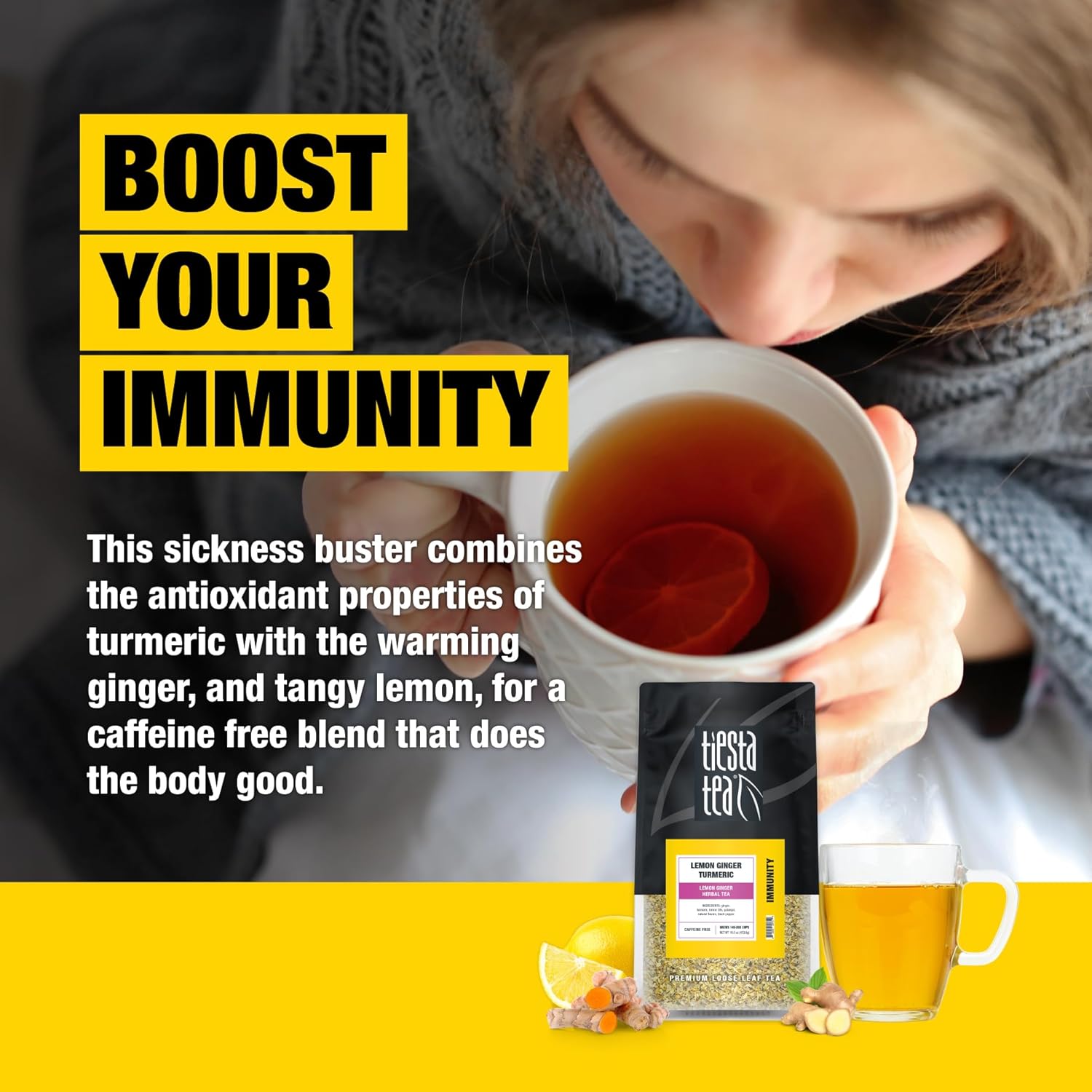 Tiesta Tea - Lemon Ginger Turmeric, Loose Leaf, Lemon Ginger Herbal Tea, Premium Non-Caffeinated Herbal Blend, Make Hot or Iced & Brews Up to 200 Cups, 16 Ounce Resealable Bulk Pouch