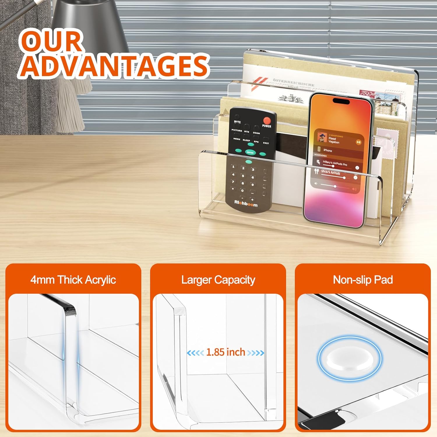 - Multi-purpose - acrylic desk organizer sorts files, mails, letters, documents, envelopes in office or school; holds magazines, books, recipe at home; organize eyeshadow, make palette in bedroom or bathroom