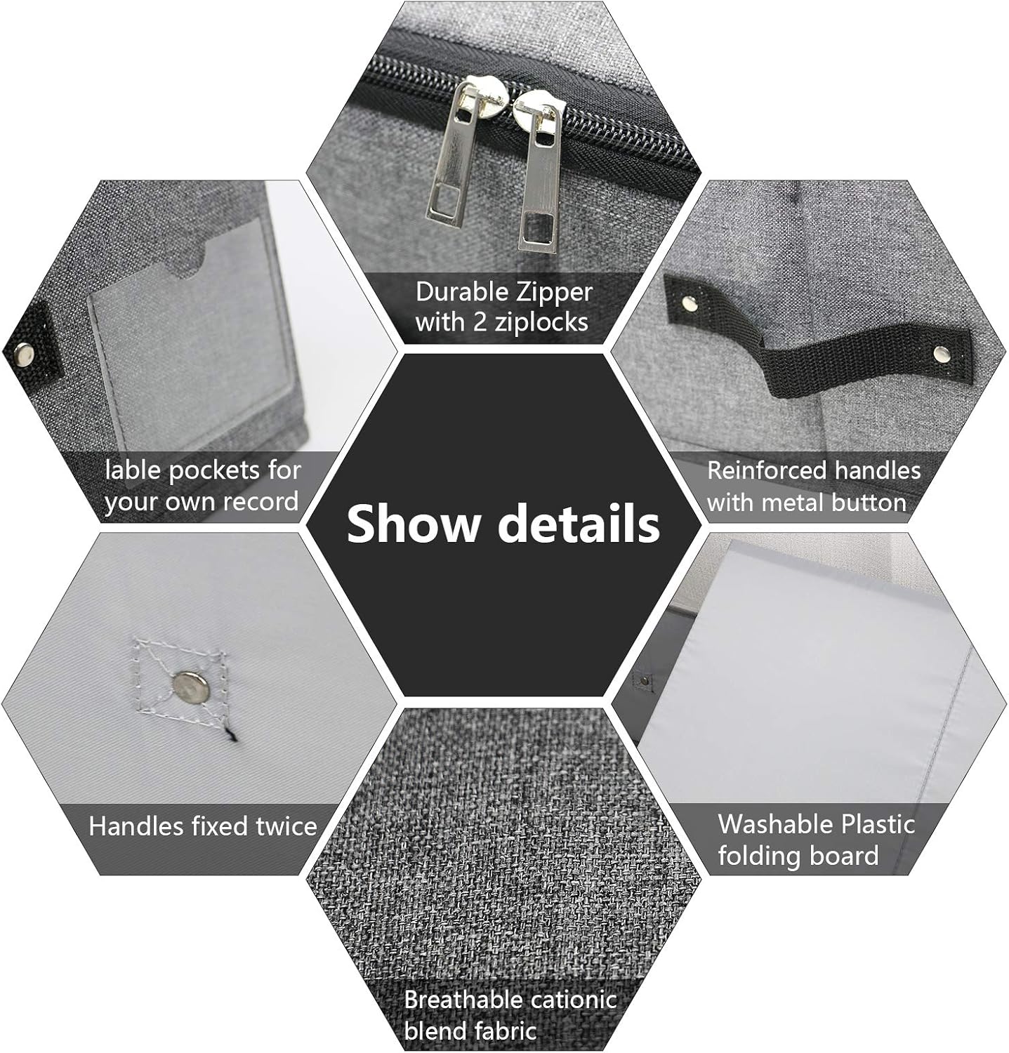 - 2, Zip Cover & label pocket, reinforced handles -- The soft zip lid fits incompressible stuff better and stackable one by one. Lock the box & drop a memo if necessary. Sewed sturdy handles and fixed by rivets.