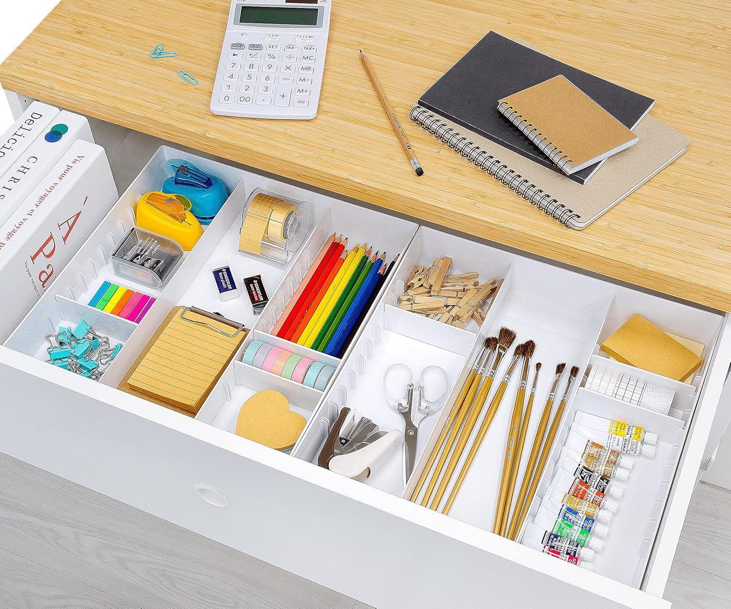 - Adjustable Drawer Organizer: Our drawer organizer has 3 sections with 2 sections adjustable perfect for desk accessories, pencils, pens, cosmetic makeup and others