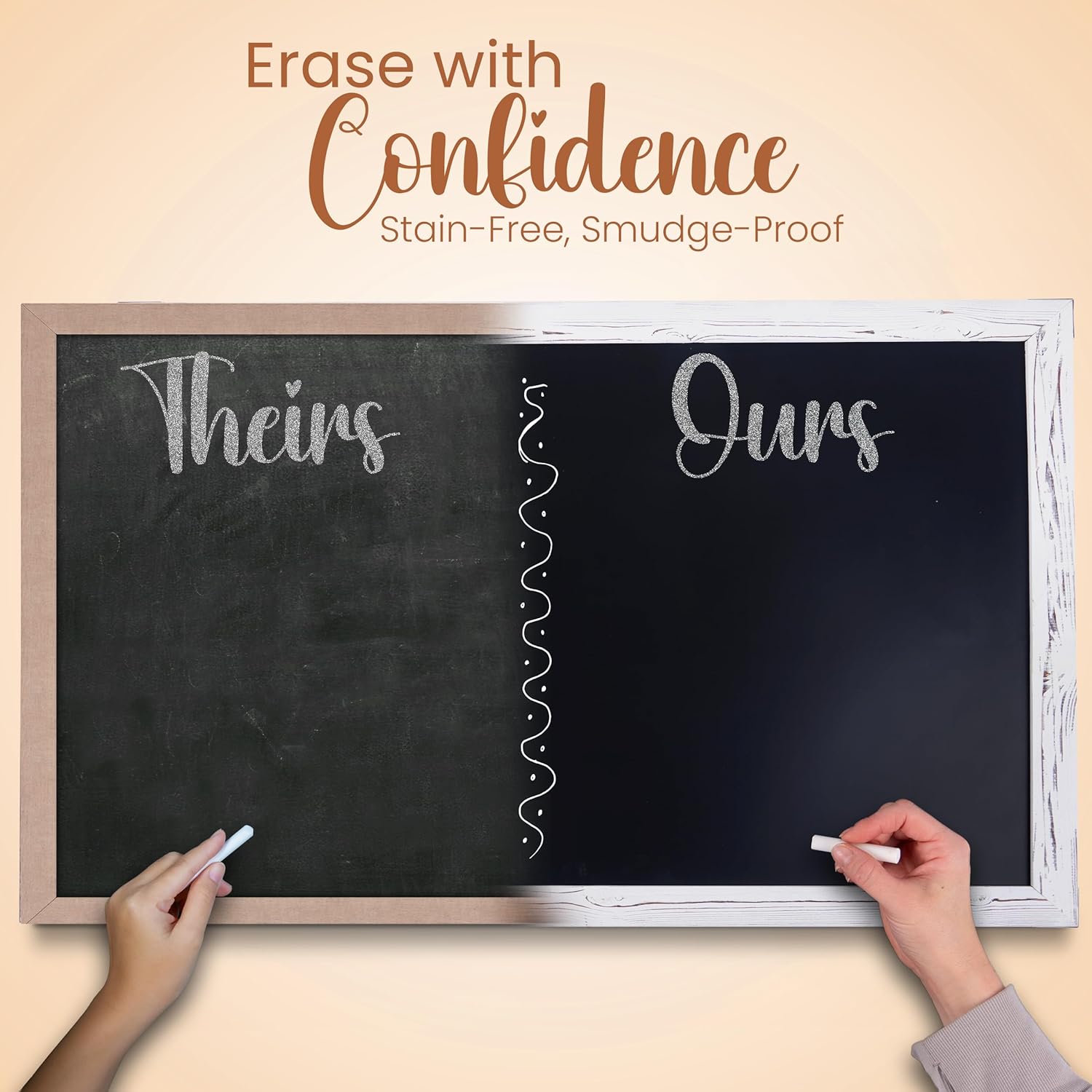 - Rustic Style: Add charm to your home or classroom with this magnetic chalkboard featuring a white rustic frame. The smooth surface of this blackboard seamlessly blends with any decor, enhancing your look