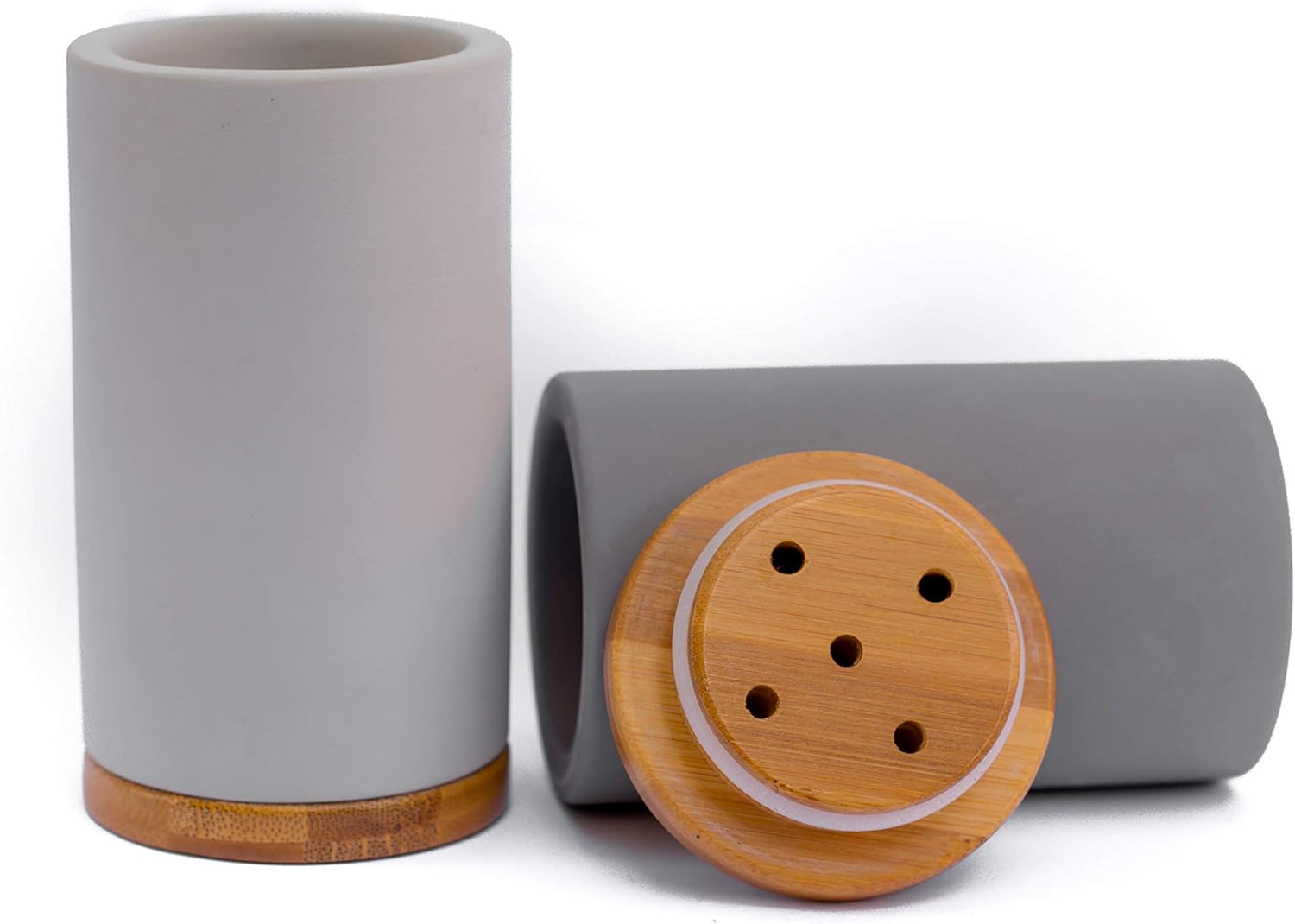 Matani Bamboo Toothbrush Holder Diatomite Tooth Brush Organizer - Storage Stand for Small Bathroom & Counter - Removable Base & Drain Holes, Water-Absorbent & Quick-Drying (Light Grey)