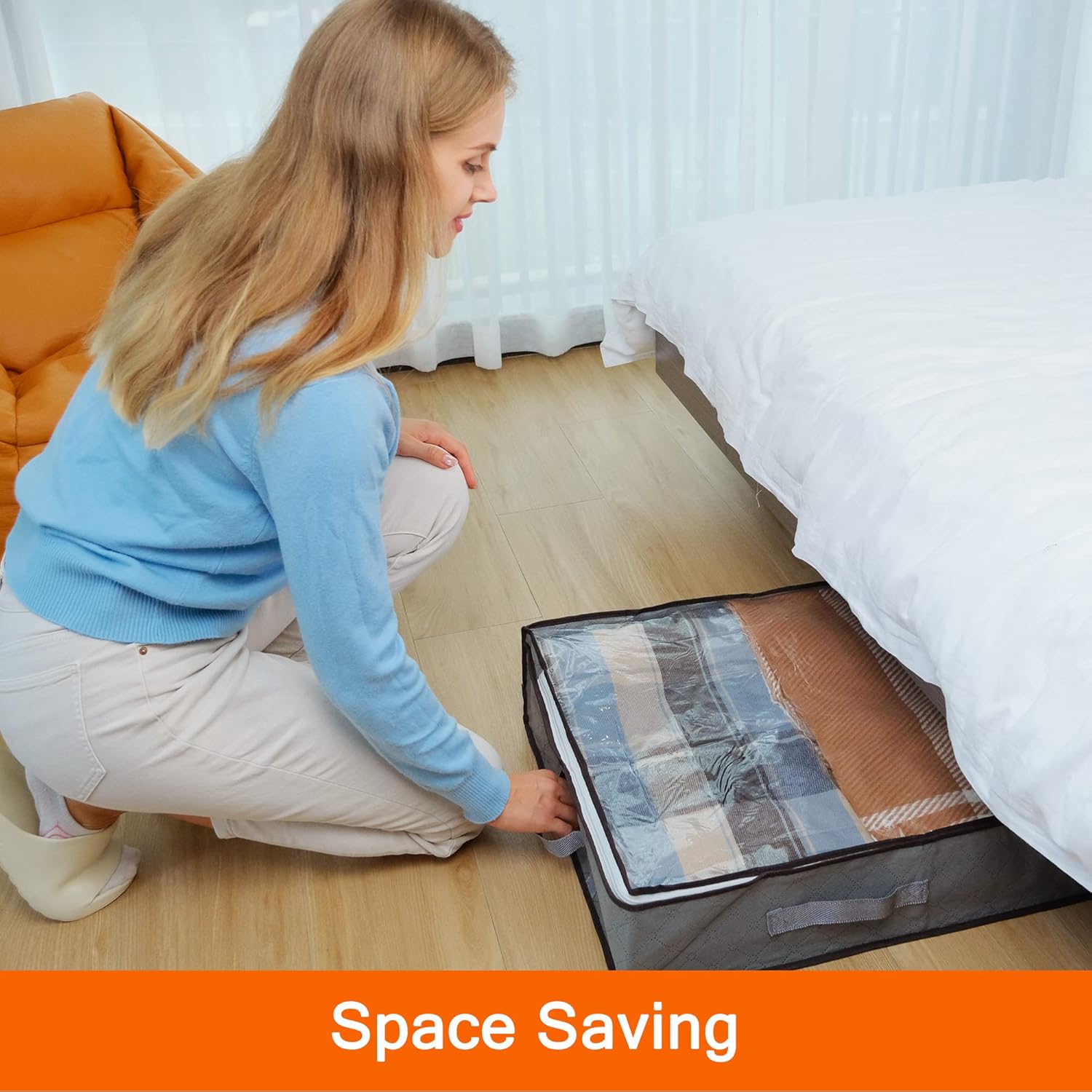 - 👍【Large Space】- Each storage container measures 40 x 20.x 6 inches / 100 x 50 x 15cm with 75L large capacity, fits perfectly under bed for storing your off season clothes, comforters, duvets, shoes, toys etc