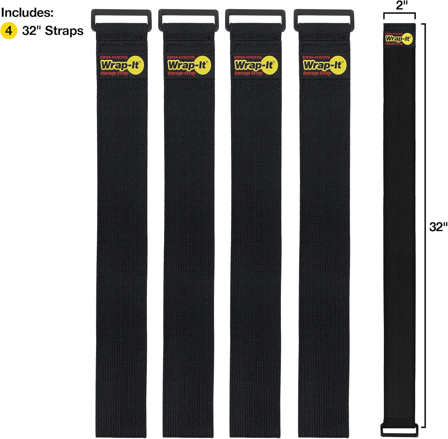 - Includes (4) 32-inch x 2-inch elastic hook and loop cinch straps