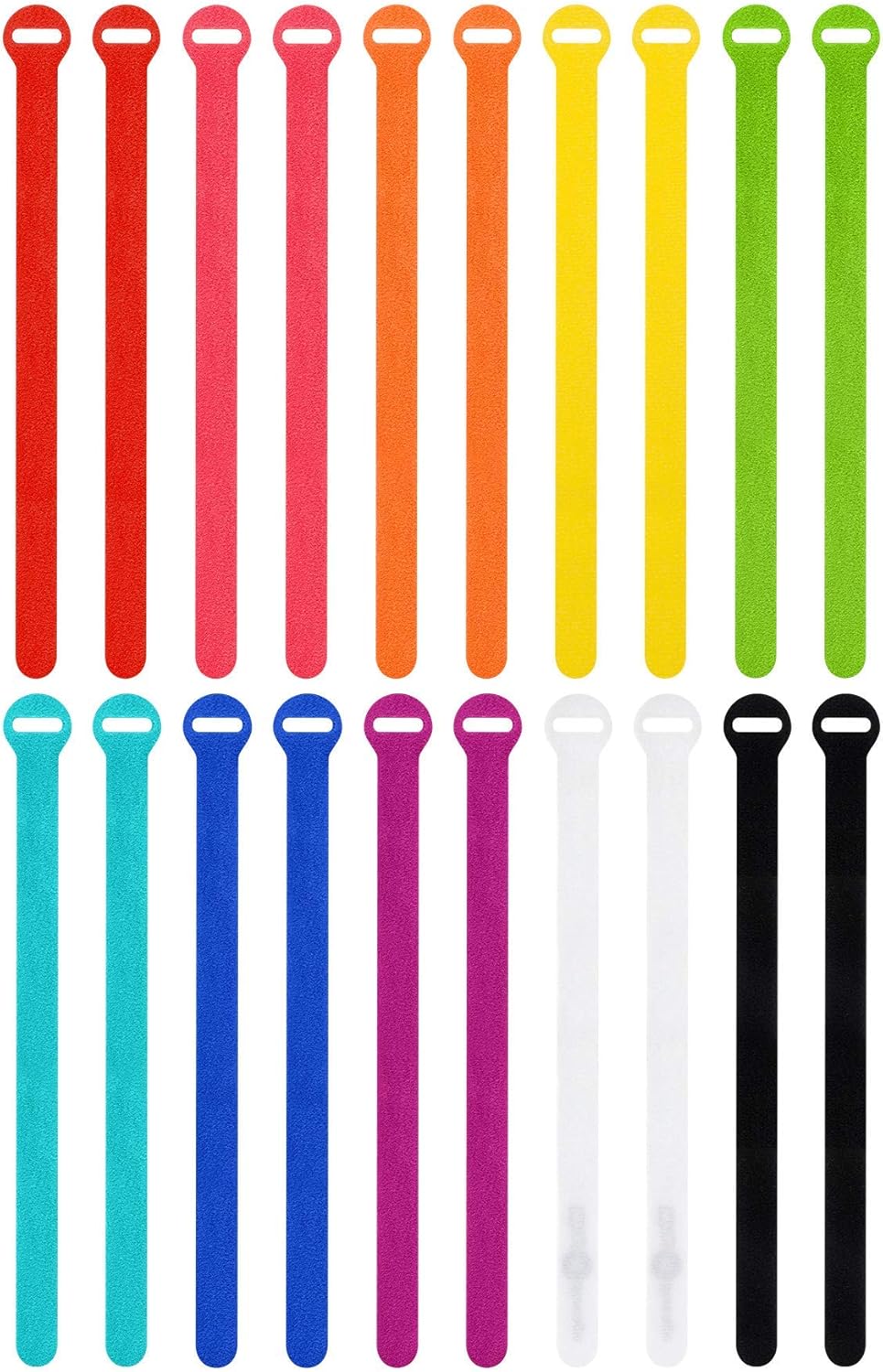 Self-Gripping Cable Ties by Wrap-It Storage, Multi-Color, 12 Inch Straps (20-pack) – Reusable Hook and Loop Cord Organizer Cable Ties for Cord Management and Desk or Office Organization