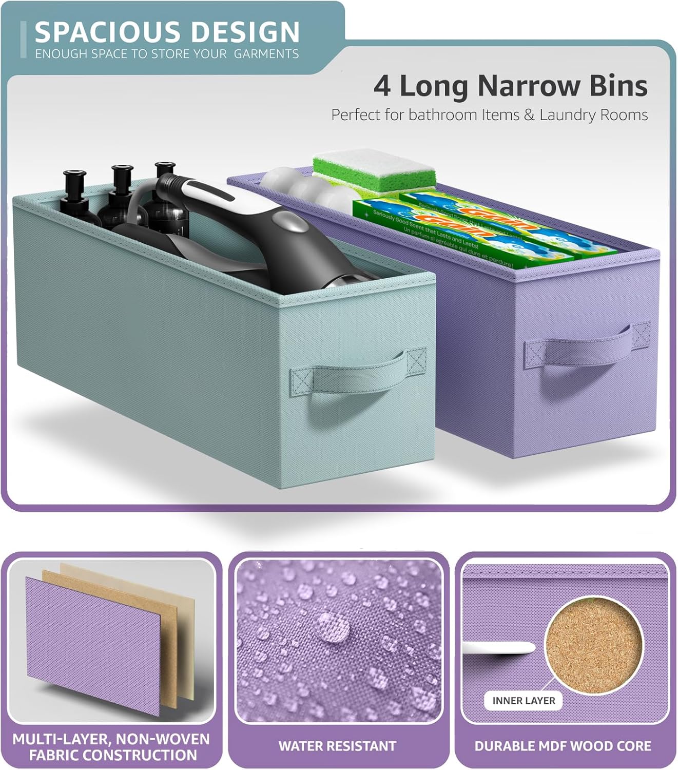 - SPACIOUS STORAGE: This long bedroom dresser features 4 fabric drawers, offering large storage space for nighttime necessities - Each drawer is approximately 5.87 inches deep - The MDF wood top features a smooth beige finish - Ideal for displaying a lamp, alarm clock, phone, charger, eyeglasses, and more