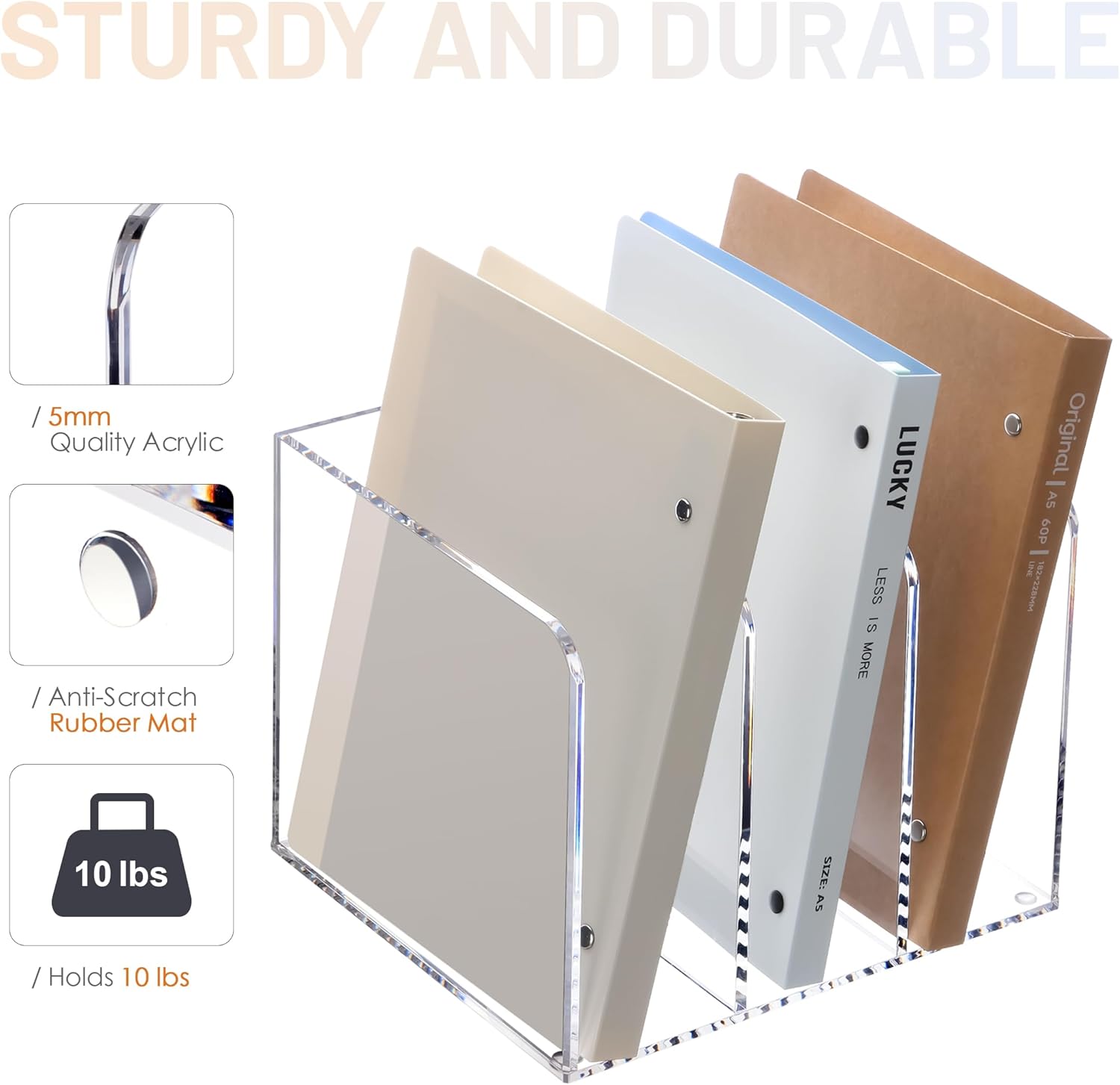 - Durable Construction: This magazine holder is crafted from high-quality acrylic material, ensuring durability with hand-polished smooth edges and corners. The rubber anti-slip pad at the bottom enhances stability on your desktop, preventing slips