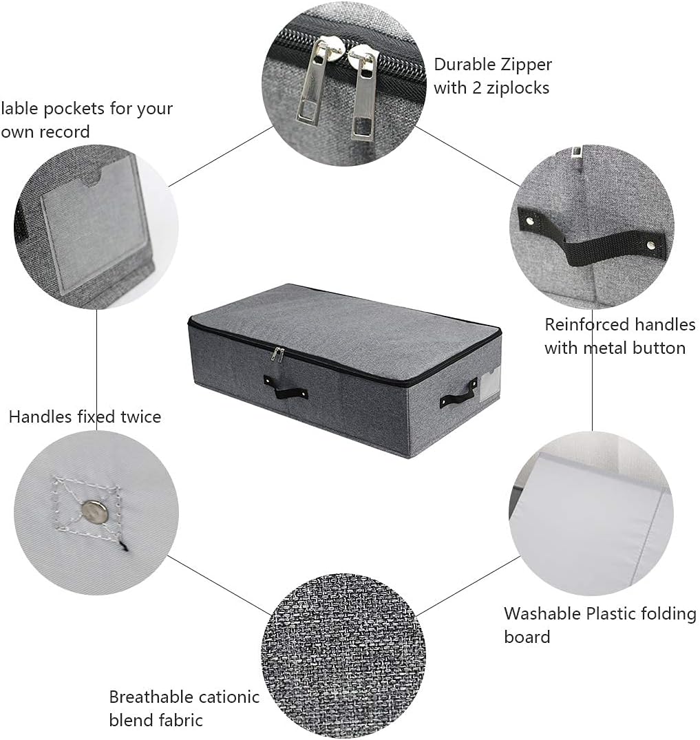 - 4, Big space fits lots of stuff -- 75*38*18cm(29.5x 15 x 7"). The all sides built in plastic boards to keep shape better. The ideal organized solution of under bed, bench, TV stand, wardrobe, camper van for toys collection, garment, blankets, pillows, duvets, shoes etc..