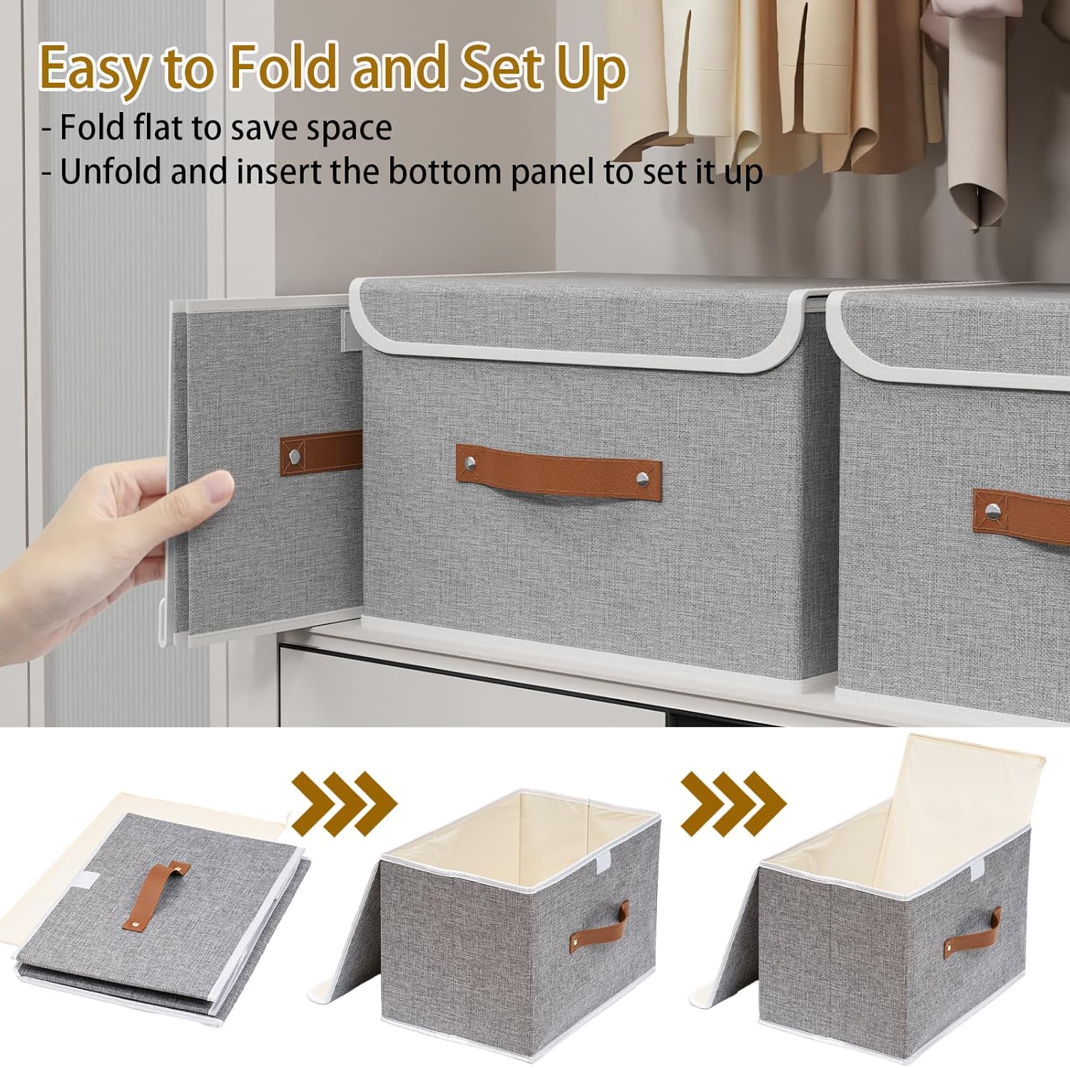 - Easy to Assemble : Just take out from the package and insert the bottom panel, Just put the lid on. And fabric storage bins with Lids are foldable for saving space when not in use
