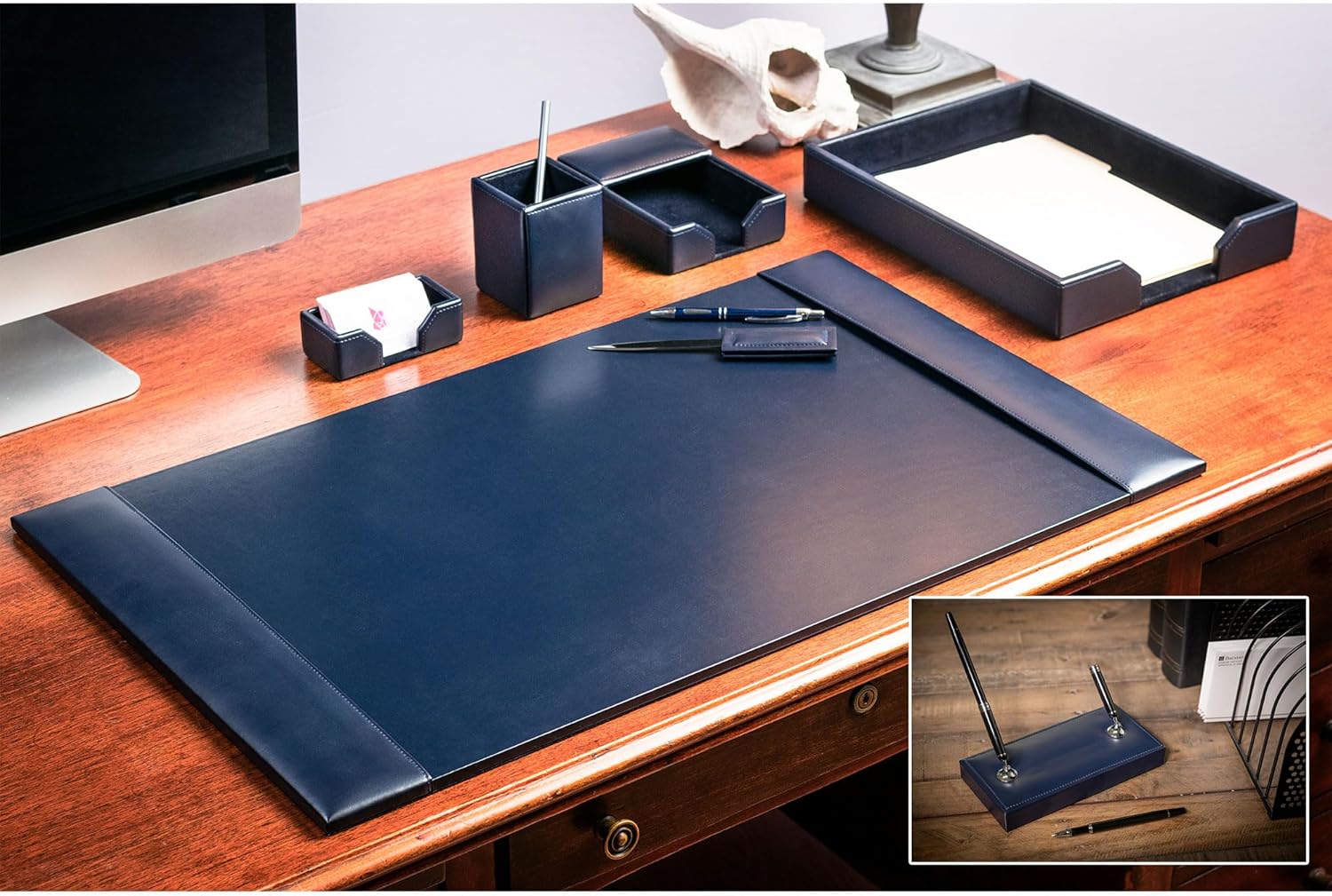Dacasso Bonded Set Luxury Leather Desk Pad & Desk Organization Essentials, 7 Piece, Navy Blue