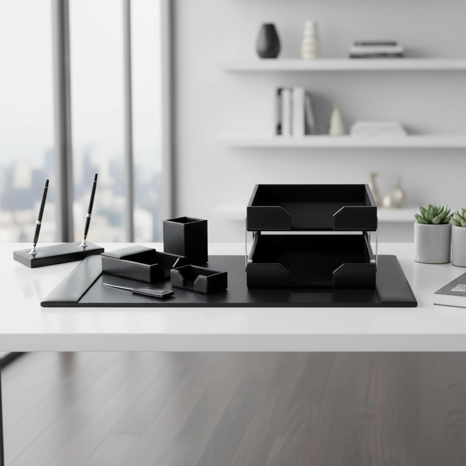 Dacasso Bonded Set Luxury Leather Desk Pad & Desk Organization Essentials, 9 Piece, Black