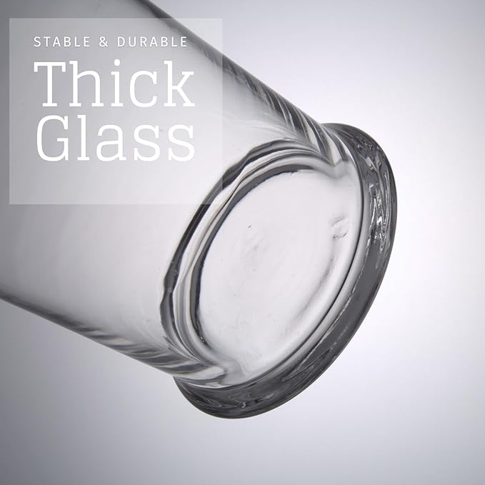 - SET OF 3 GLASS JARS: The glass apothecary jars set is designed with three different heights. Small: H:7.5" × D5"; Middle: H:8.5" × D:5"; Large: H:11" × D:5". The capacities of the decor jars are 23 fl.oz, 34 fl.oz and 45 fl.oz, respectively.