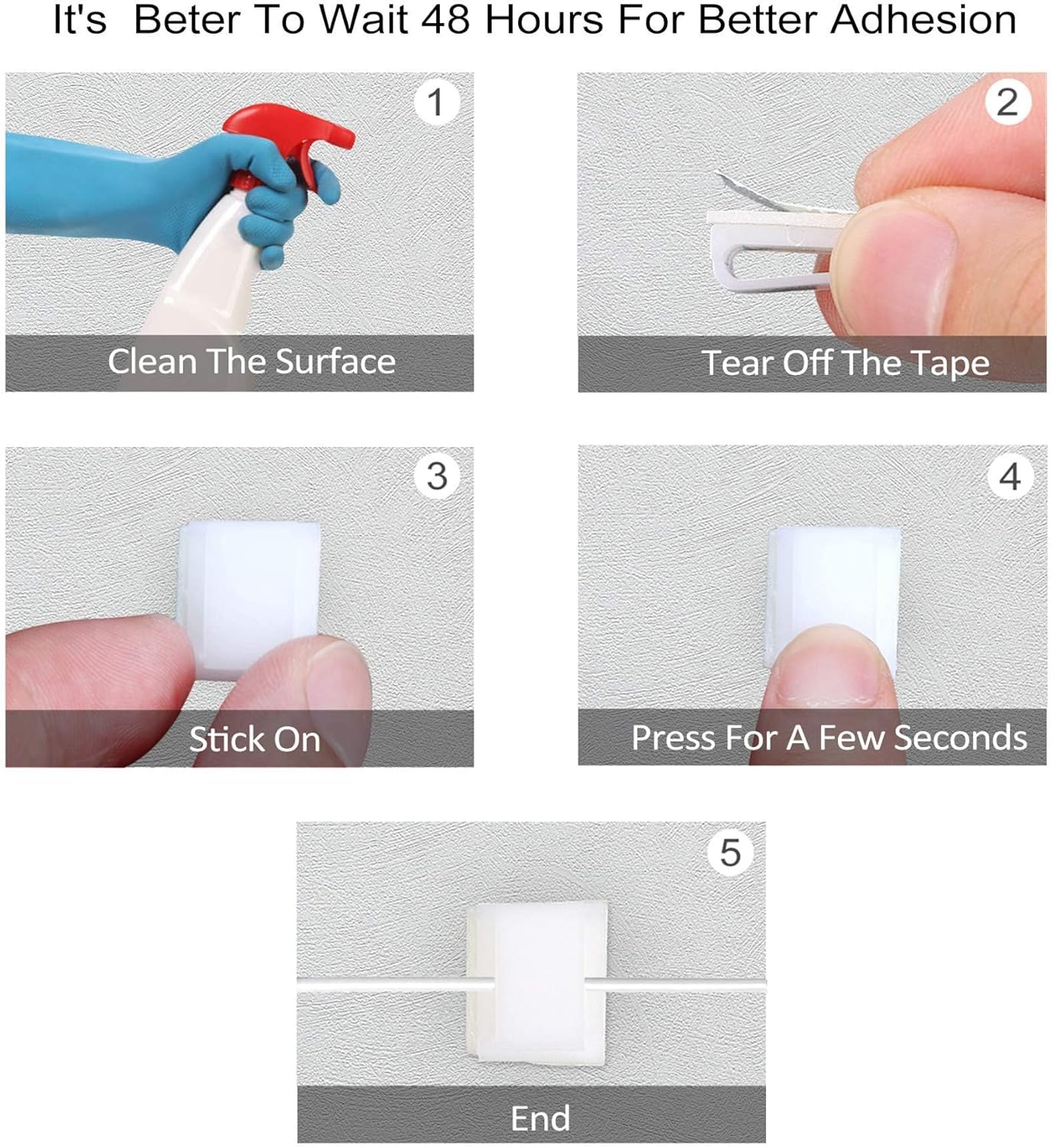 - Reminder: these clips are only suitable for fixing LED light strips or some thin wires (diameter less than 3mm). At the same time, after the clip is attached to the wall, it is better not to fix the object within 48 hours, because the desired fixation effect will not be achieved.