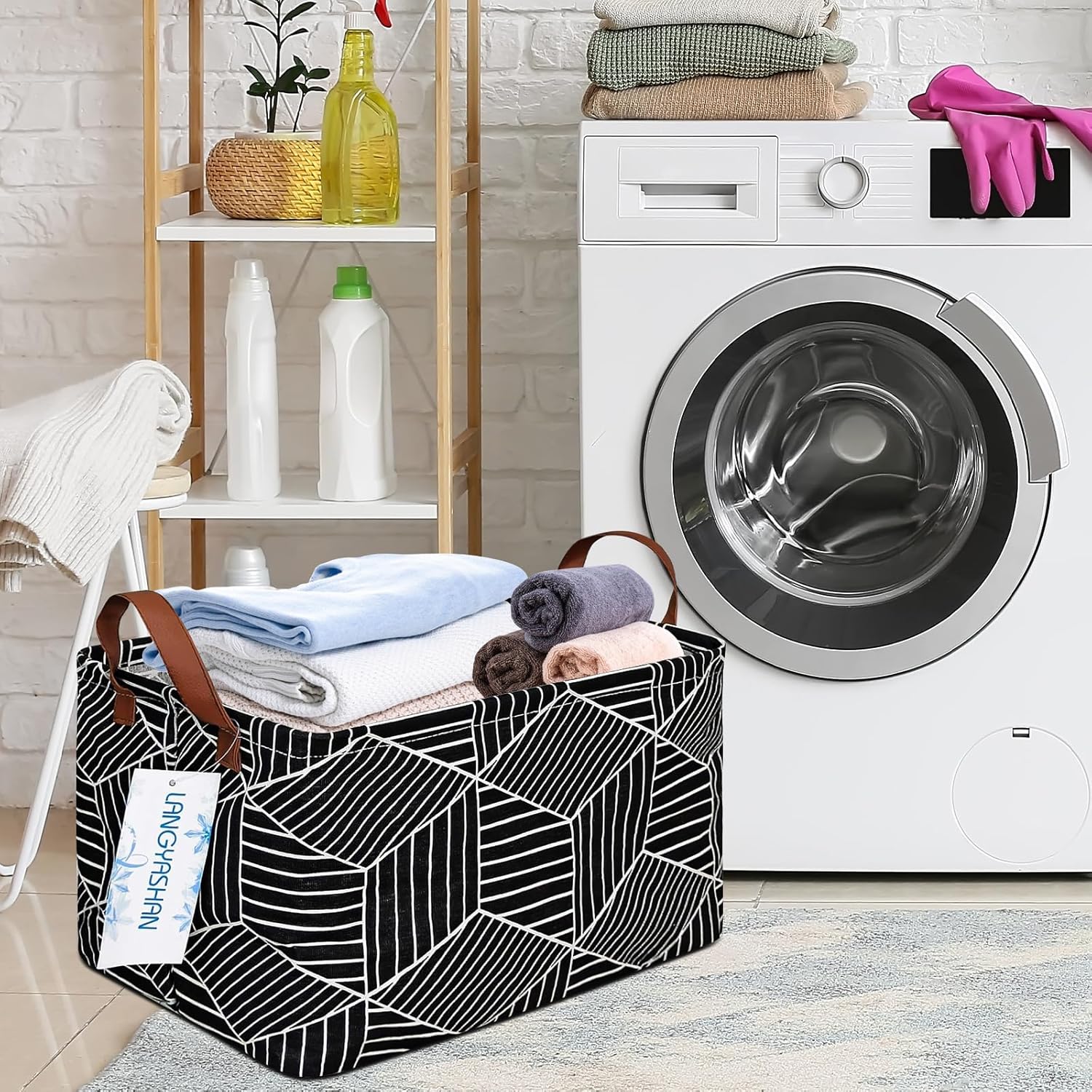 LANGYASHAN Rectangular Storage Bin Collapse Canvas Fabric Cartoon Storage Basket with Handles for Organizing Home Kitchen Boys and Girls Toys Office Closet Shelf Baskets (Black Diamond)