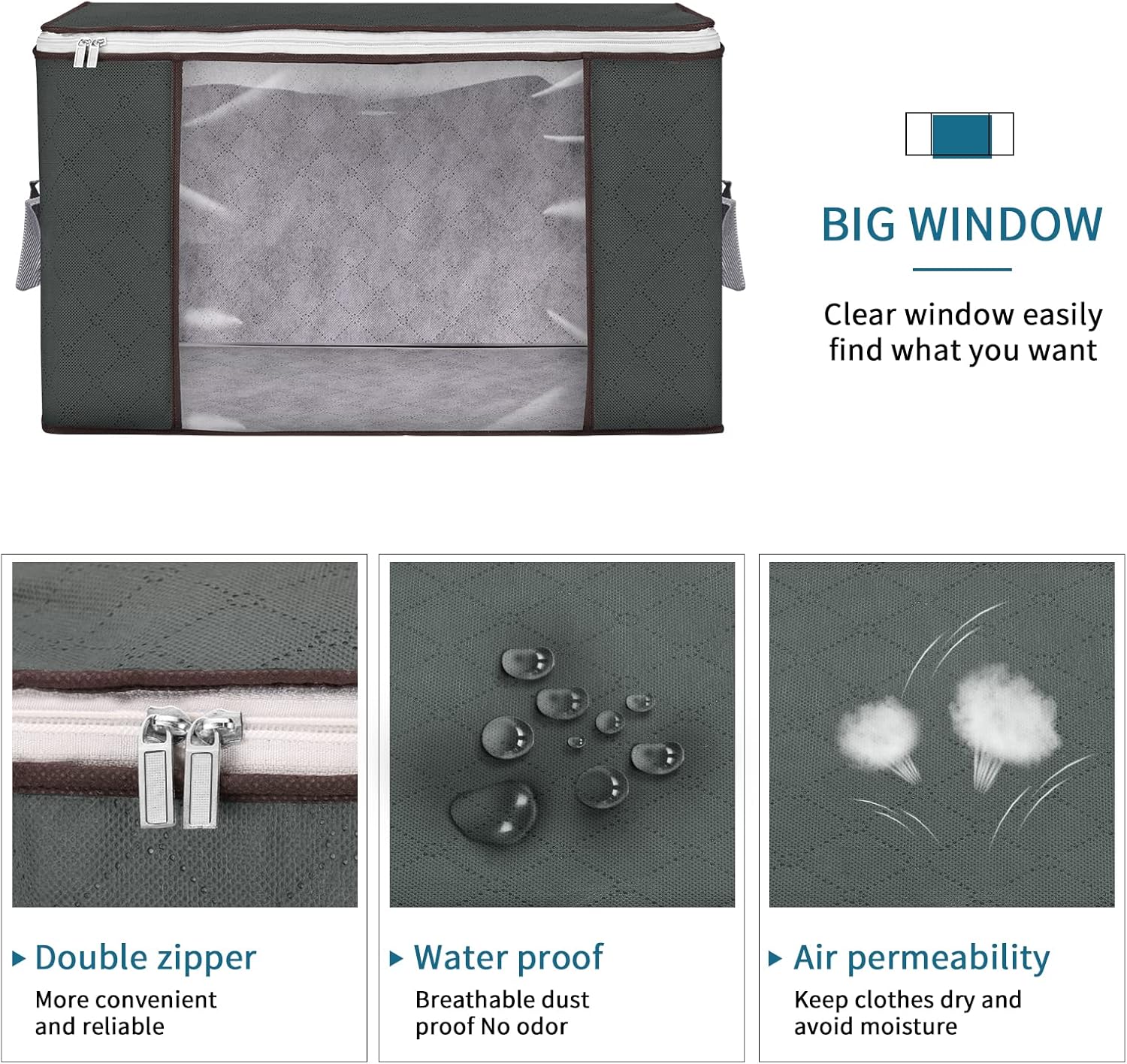 Large Storage Bags, 4 Pack Clothes Storage Bins Foldable Closet Organizers Storage Containers with Durable Handles Thick Fabric for Blanket Comforter Clothing Bedding 90 L (Gray)