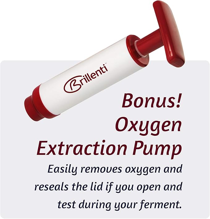 Mason Jar Fermentation Kit - Food Grade Fermenting Lids for Wide Mouth Mason Jars, includes Easy Grip Fermenter Lids 4-Pack, Weights and Pump - a Great Starter Sauerkraut Fermenting Kit, Brillenti