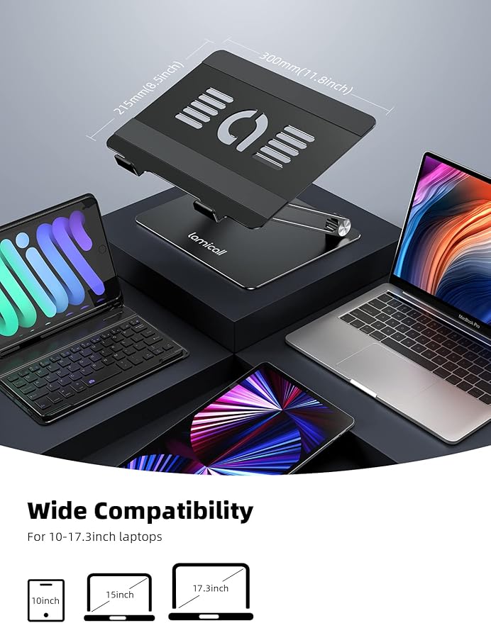 - Wide Compatibility: The laptop stand for desk is compatible with all laptops from 10" up to 17.3", such as Mac MacBook Pro 16 14 inch 2021 Air 12 13 15 inch 2018 2019 2020 Microsoft Surface Google Pixelbook Dell XPS HP Acer Chromebook and more 11inch - 17.3 inch laptop notebooks. Christmas Gifts Thanksgiving Present Regalos de Navidad.
