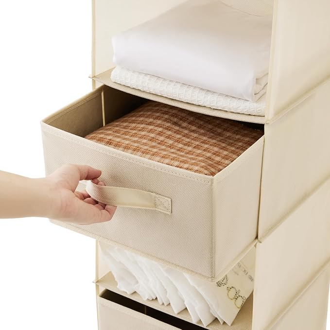 MAX Houser 6 Tier Shelf Hanging Closet Organizer, Closet Hanging Shelf with 2 Sturdy Hooks for Storage, Foldable (Beige-D3)