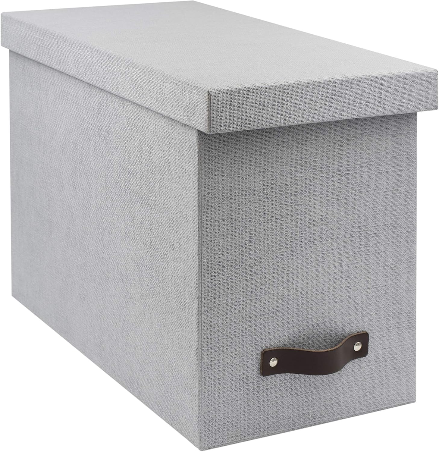 Bigso John Desktop File Box | File Storage Box and Document Organizer for Important Paperwork | Durable Hanging File Box with a Lid and Leather Handle | 7.4’’ x 13’’ x 10.4’’ | Ash