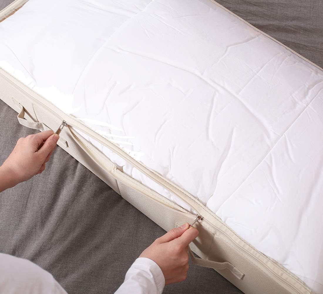 iwill CREATE PRO Pack of 2, Visible Lid Underbed Clothes Storage Bins for Shoes, Blankets, Sheets Organizer, 6" Height 7" Tall Under the Bed Storage Containers, Beige