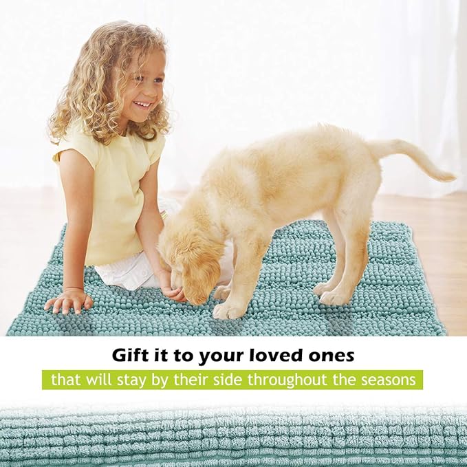 KGORGE Non Slip Chenille Bath Rugs - Super Soft Water Absorbent Anti-Skidding Fast Dry Thick Plush Kitchen Mats for Bathroom Shower Tub Entryway, Aqua, 20" W x 32" L 1 Piece