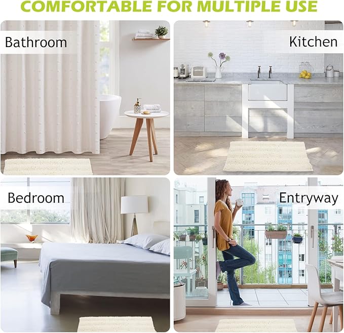 KGORGE Bath Mat for Bathroom - White Super Soft Shower Rug Non-Slip Washable Absorbent Quick Drying Chenile Bathtub Floor Carpet, Cream,60 x 24, 1 Piece