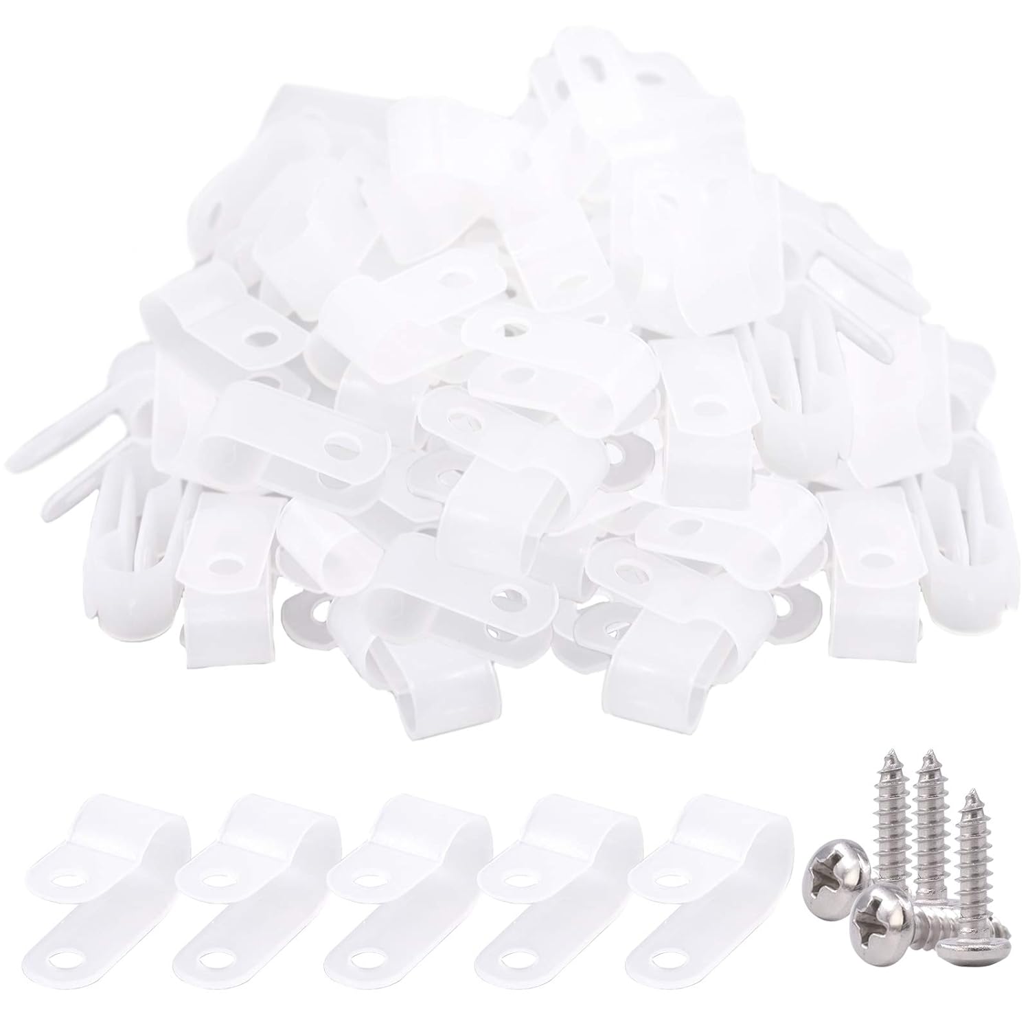 - ★【What You Get】: In this kit includes 120pcs 3/8 inches white nylon R-type cable clip wire clamps and 120pcs screws. Such a large number of clamps can meet your multiple work needs, so that you do not need to buy the same size products.